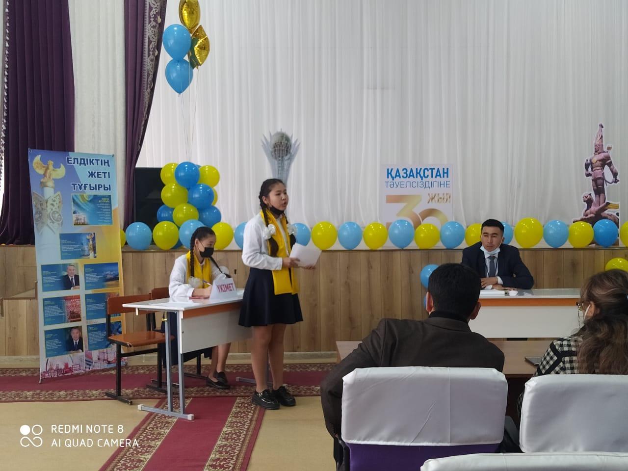 Айлық барысында мұғалімдер ұйымдастырған іс-шаралар заман талабына сай ақпараттық технологияларды пайдалану арқылы өтті. Апталық соңында суреттер көрмесінің, сыныптан тыс іс –шараларға қатысқан оқушылар айлық қорытындысы жасалып қатысушылар марапатталды.Тарих пәні мұғалімдері Омарова И.Б мен жас маман Қиғамбек Н.Т ұйымдастырумен 8-9 сынып оқушылары арасында «Тәуелсіздікке 30 жыл» атты дебат өткізіді.Дебатта оқушылар қазіргі кездегі проблемалық тақырыптарды қозғап отырды.