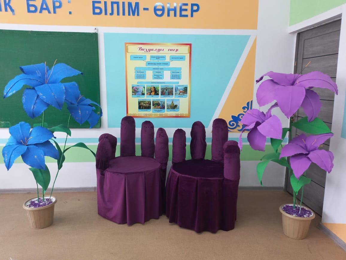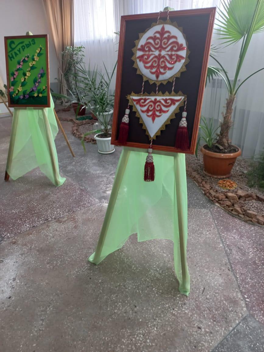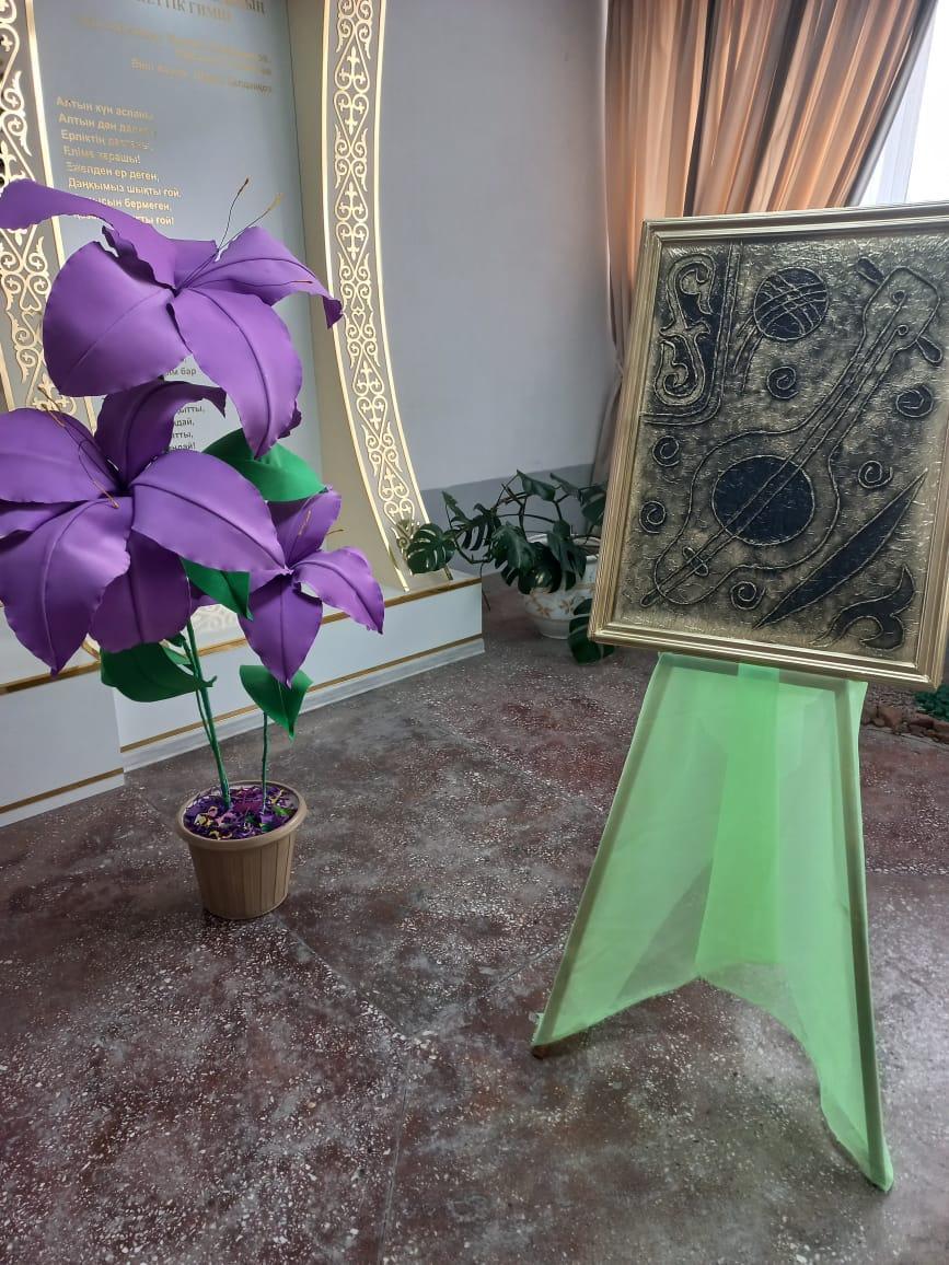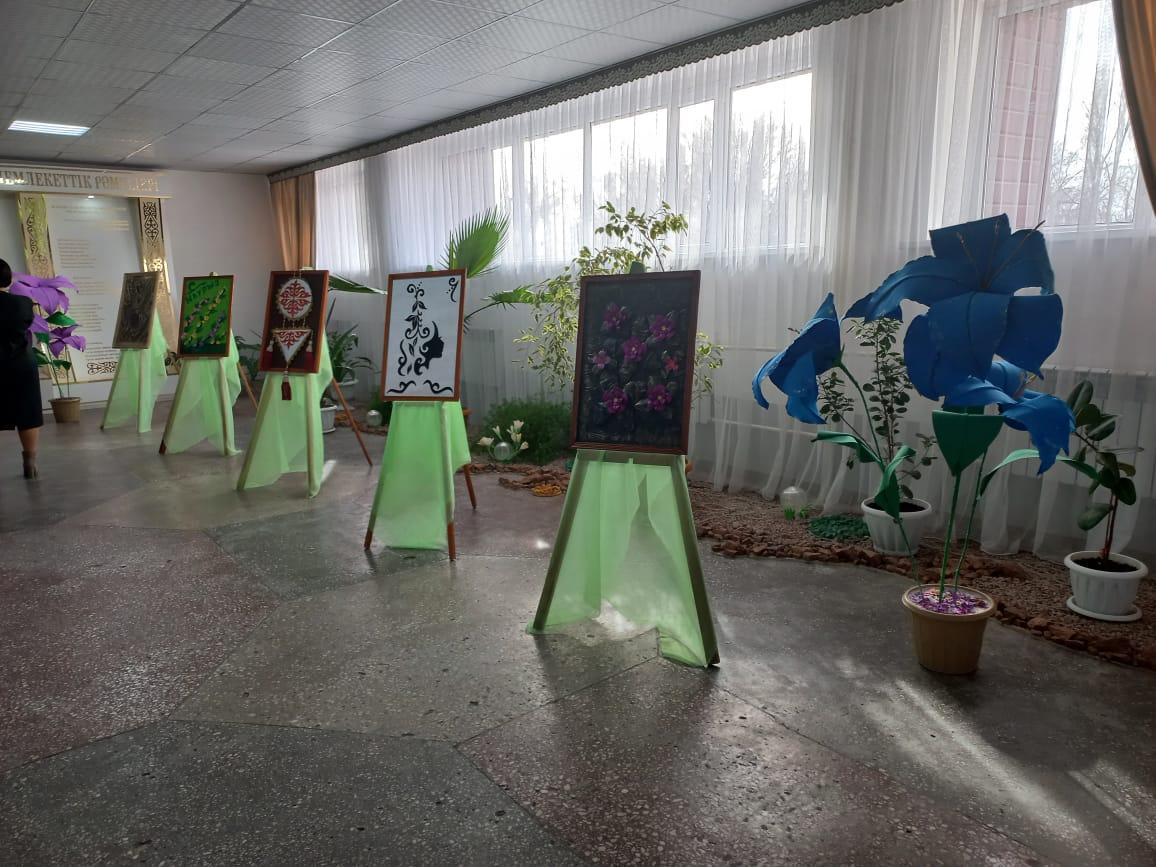Айлықтың ашылу салтанатына орай мектеп фойесіне оқушылардың қолөнер көрмесі қойылды