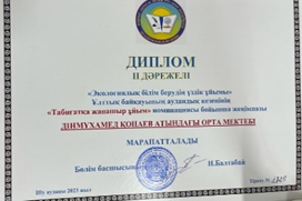 16 октябрь 2023 0 1 2 3 4 5 Жаратылыстану пәндері ӘБ мұғалімдерінің жетістіктері Қазан айында өткізілген «Экологиялық білім берудің үздік ұйымы» Ұлттық байқауға қатысып,ӘБ мұғалімдері аудандық кезеңінің «Табиғатқа жанашыр ұйым» номинациясы бойынша жүлделі 2 орынға ие болып, Дипломмен марапатталды.