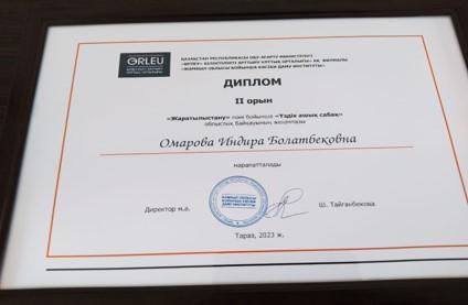 Педагогтерге арналған «NIO» Қазақстан интернет олимпиаданың IІ дәрежелі Дипломымен марапатталды.