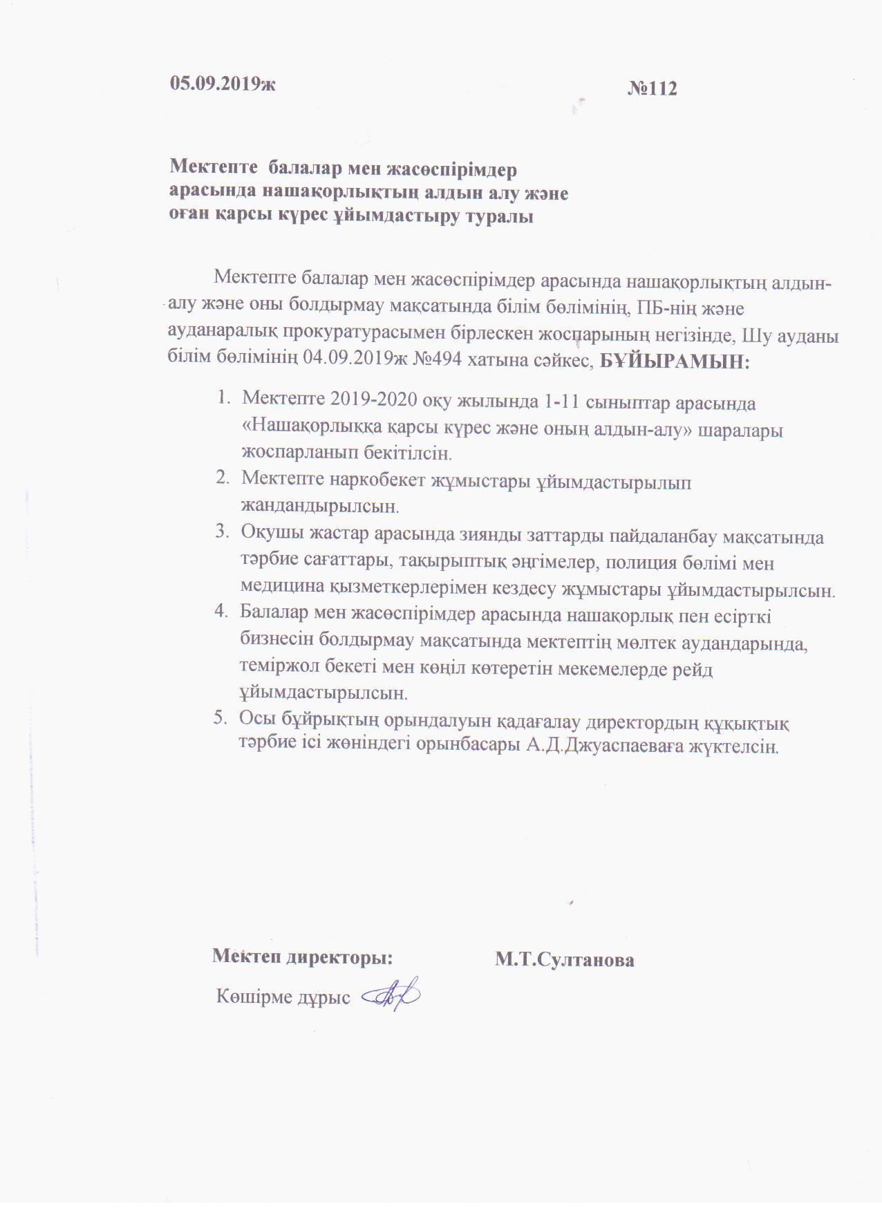 құқық бұзушылықтың алдын алу /бұйрықтар/ » Дінмұхамед Қонаев атындағы шағын орталықты орта мектебі