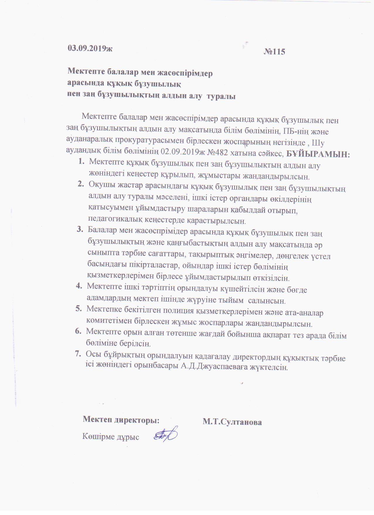 » » құқық бұзушылықтың алдын алу /бұйрықтар/