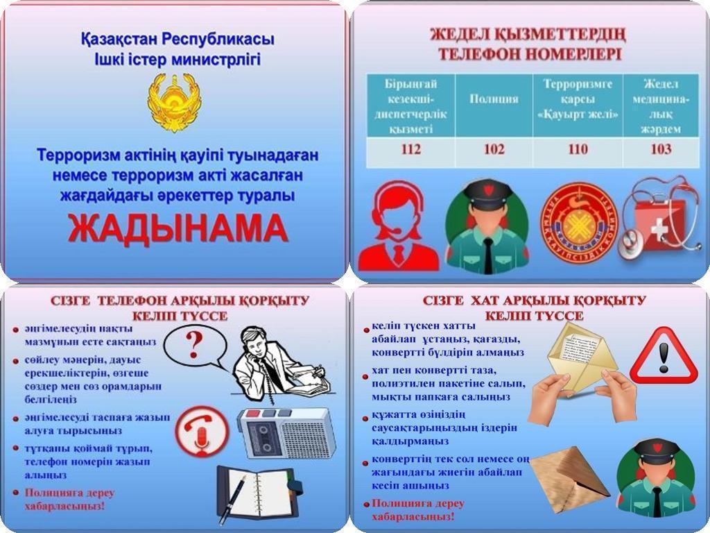 2020 жылдың 3 наурыз күні мектеп оқушыларына терроризм актісі кезіндегі іс-әрекетерді түсіндіру жұмыястары жүргізіліп,  жадынама таратылды