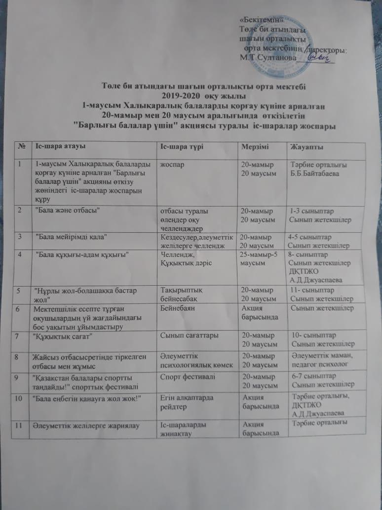 "Барлығы бала үшін!" Акциясын өткізу жоспары құрылып, жұмыс жүргізілуде