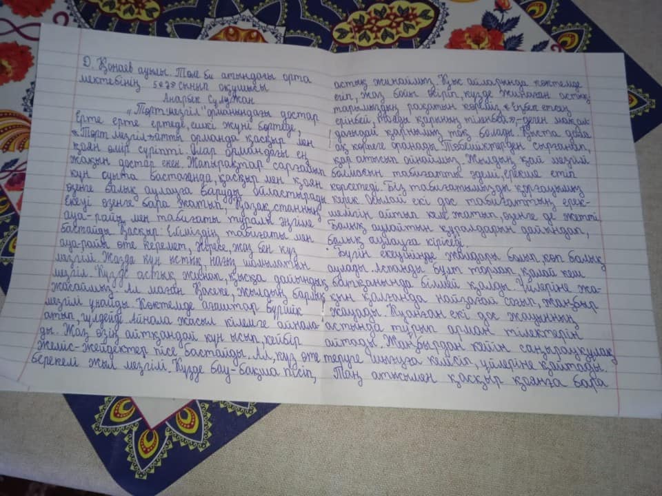 Д.Қонаев ауылы Төле би атындағы орта мектебінде 9 қараша күні 5-6 сынып оқушылары арасында оқушылардың экологиялық мәдениетін қалыптастыру, экологиялық білім мен тәрбие беру деңгейін арттыру, туған елдің табиғатына аса қызығушылық танытатын талантты оқушыларды анықтап, олардың шығармашылық қабілетін, қоғамдық белсенділіктерін дамыту мақсатында "Табиғат сырлары" тақырыбында ертегілер байқауы ұйымдастырылды. Шығармалар арасында 5 "Ә" сынып оқушысы Анарбек Сұлужанның жұмысы үздік деп танылып, аудандық кезеңге жолдама алды.