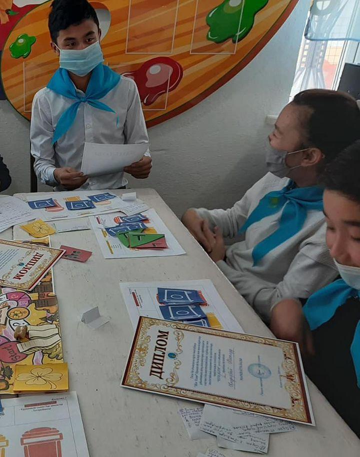 Қонаев ауылы Төле би атындағы орта мектебінің " Жас Ұлан" бірыңғай балалар мен жасөспірімдер ұйымының жасұландықтары 9 "ә" сынып оқушылары арасында әлеуметтік жауапкершілікті тәрбиелеу мен экологиялық мәдениетін қалыптастыру мақсатында "ECO-ALEM" ойынын ұйымдастыр