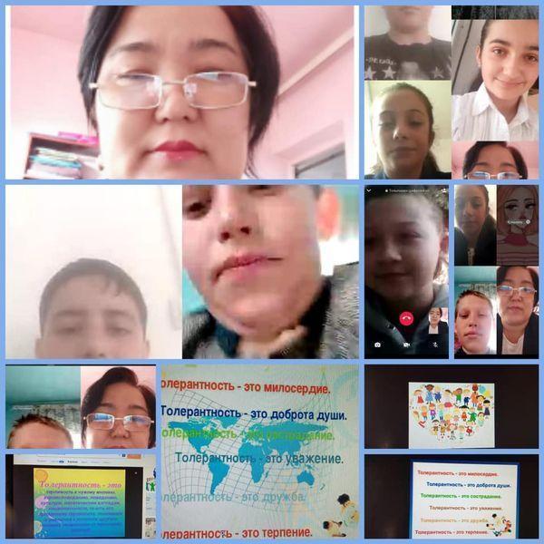 Төле би атындағы орта мектебінде "Қиын бала болмайды" жобасы аясында, 2020-2021 оқу жылының Құқықтық тәрбие жоспарына сәйкес онлайн форматта ZOOM және Whats App желісі арқылы директордың құқықтық тәрбие ісі жөніндегі орынбасары А.Д.Джуаспаеваның ұйымдастыруымен "Толеранттық дегеніміз не?" тақырыбында 5-6 сынып оқушыларының аралығында сынып сағаттары өткізілді.