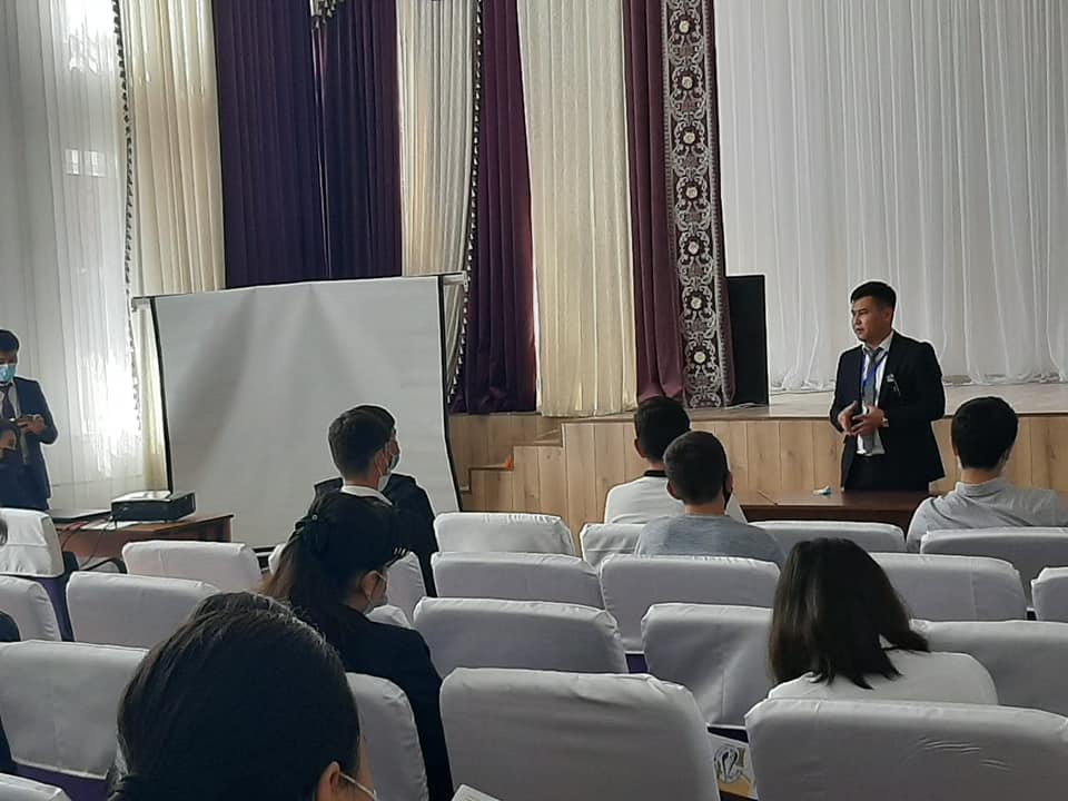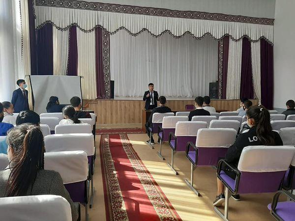 Төле би атындағы орта мектебінде кәсіптік бағдар беру жұмысы бойынша ШУ ТЕМІР ЖОЛ КОЛЛЕДЖІНІҢ мамандарының қатысуымен мектеп бітіруші түлектерге, 2021-2022 оқу жылына үгіт- насихат жұмыстарын жүргізді. Оқуға түсу ережелерімен таныстырып, оқушылардың көңілде жүрген сұрақтарына жауап берді.