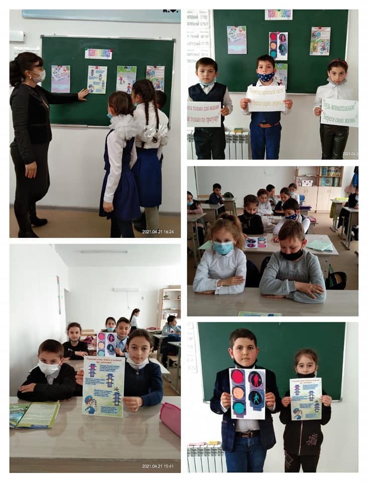 Төле би атындағы  орта мектебі бойынша 20 сәуір мен 20 мамыр  аралығында оқушылар арасында  көшеде жүру тәртібін сақтау мақсатында "Жол ережесінің қауіпсіздігі" атты айлық жоспарына сәйкес, ДҚТІЖО А.Д.Джуаспаеваның ұйымдастыруымен мектептің бастауыш сынып оқушылары арасында "Жолда жүру қауіпсіздігі" тақырыбында  ашық сынып сағаттары өткізілді.