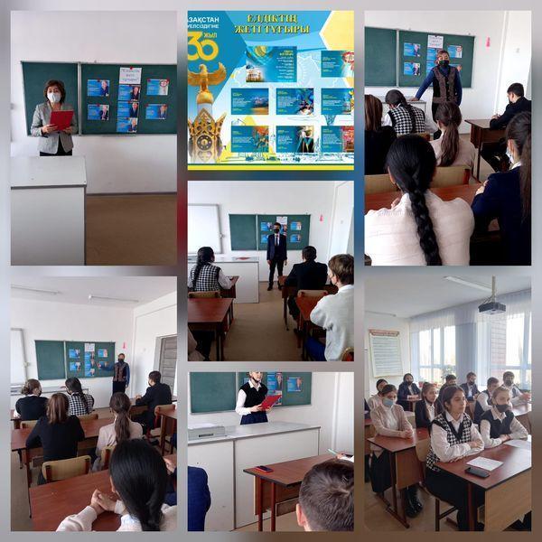 1-желтоқсан Қазақстан Республикасының Тұңғыш Президенті күніне орай тарих пәнінің ӘБ жетекшісі Р.Мамбетованың ұйымдастыруымен "Елдіктің жеті тұғыры" тақырыбында танымдық сағат және "Елін сүйген , Елі сүйген Елбасы" тақырыбында дөңгелек үстел өтізілді.