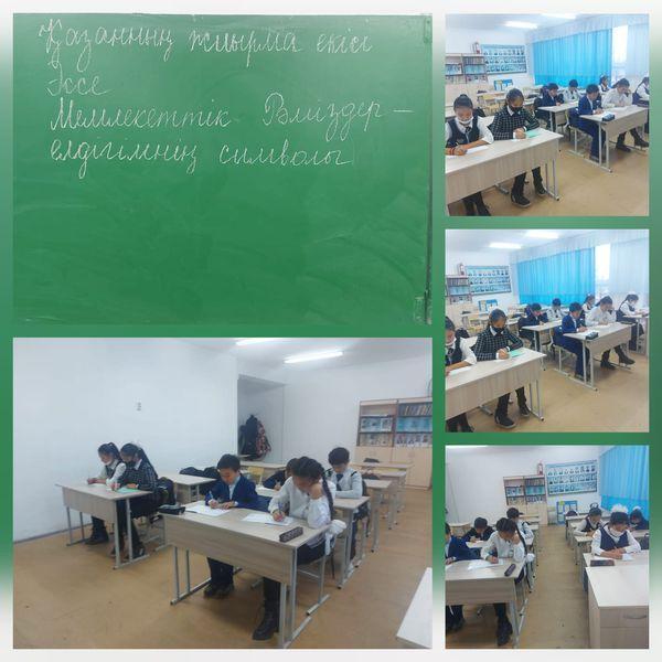 Қонаев ауылы, Төле би атындағы орта мектебінде 2021-2022 оқу жылына арналған тәрбие жоспарына сәйкес, мектептің қазақ тілі және әдебиет пәнінің мұғалімі Г.Арғынбаеваның ұйымдастыруымен 5-6 сыныптар арасында, Қазақстан Республикасының Тәуелсіздігі қарсаңында рәміздерді насихаттау мақсатында, "Мемлекеттік рәміздер- елдігімнің символы" атты эссе байқауы өткізілді.