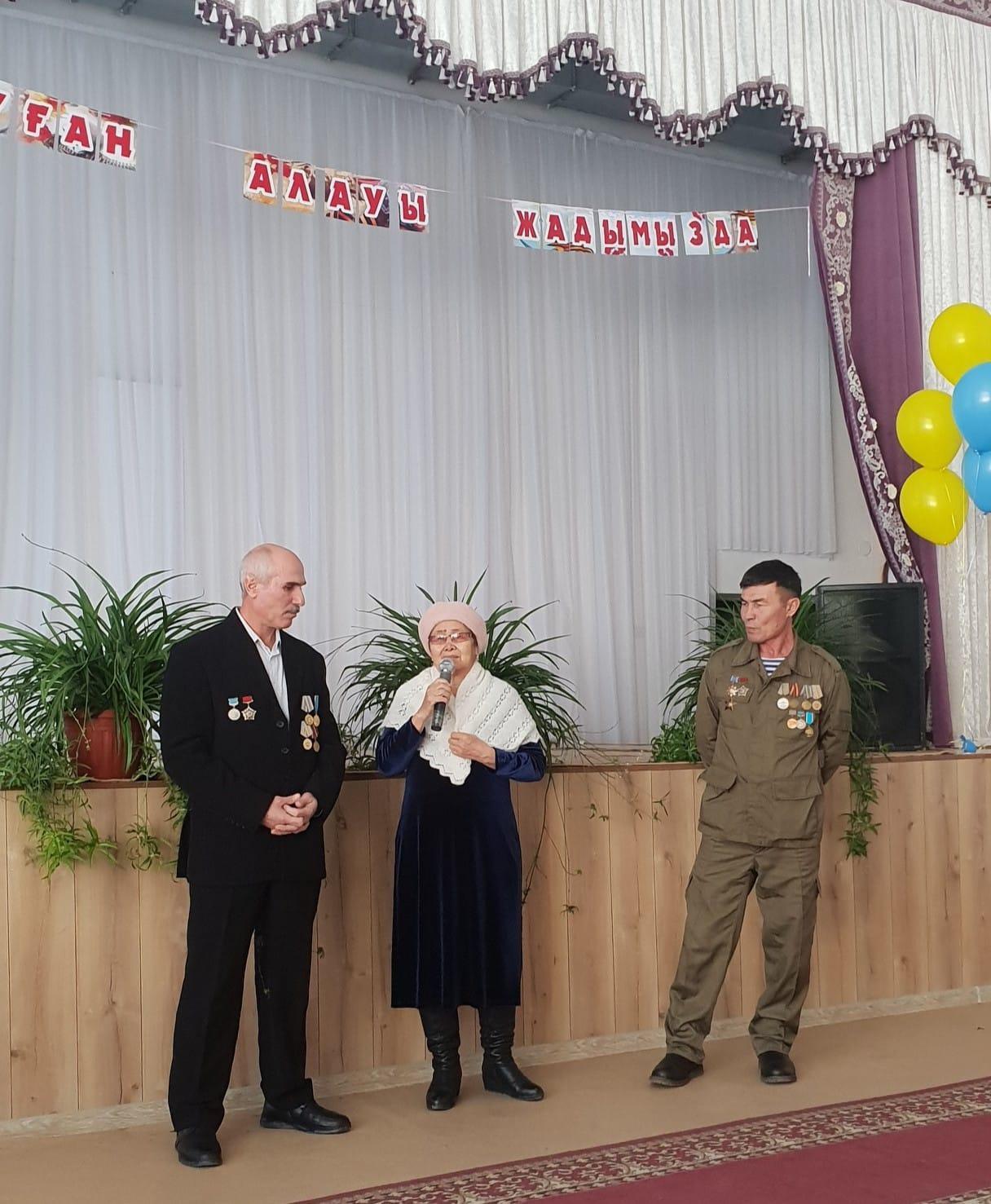 Төле би атындағы орта мектебінде, мектептің 2021-2022 оқу жылының тәрбие жоспарына сәйкес Ауған соғысында намысы жоғары, интернационалдық борышын адал өткерген азаматтардың ерлігін насихаттау мақсатында "Ауған алауы жадымызда" тақырыбында 7 сынып оқушыларының қатысуымен ашық тәрбие сағаты өткізілді. Қонаққа ауылымызда ауған соғысына қатысқан азаматтарымыз Дүйсембаев Жақсылық Болысбайұлы, Бекиров Юсуф Сейфатович, (Утепов Дулаттың) анасы Клепа Семенқызы шақырылып, елін жерін қорғаған азаматтарымызға арналған кездесу кеші болып өтті. Қонақтарымыз Ауғаныстан жерінде болған оқиғаларымен бөлісіп, болашақ ұрпаққа бейбітшілік өмір тілеп, лебіздерін білдірді.