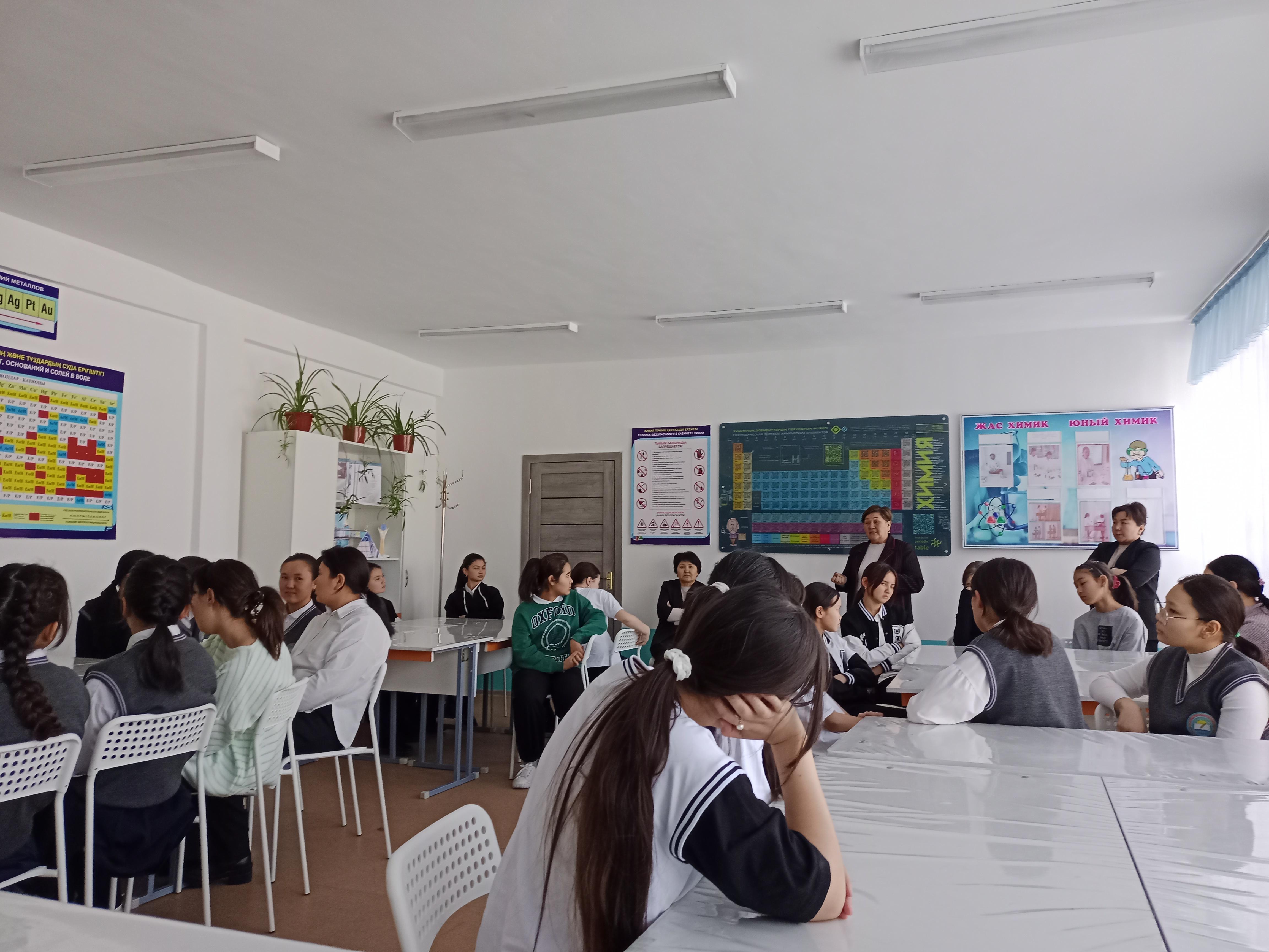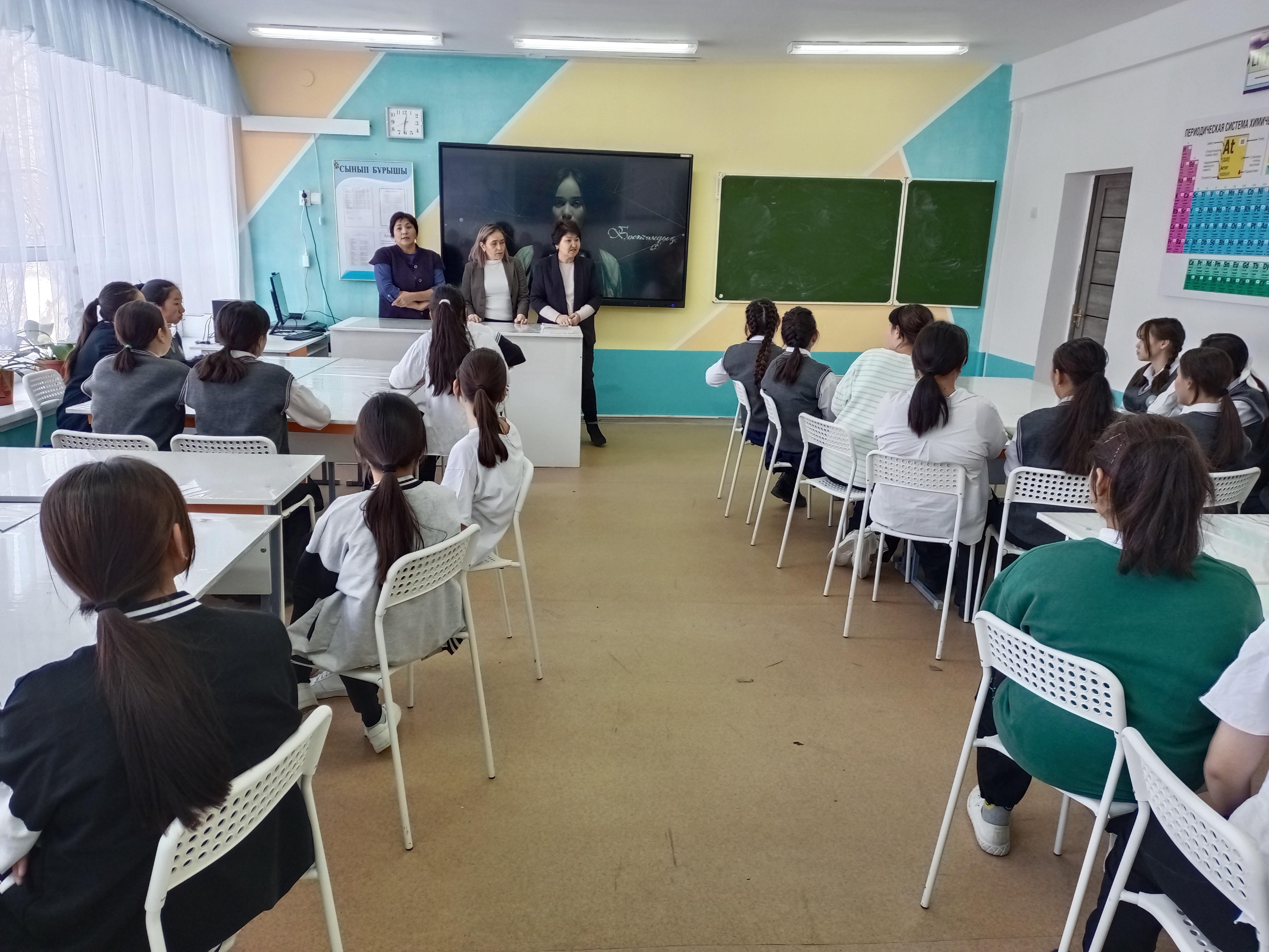 Дінмұхамед Қонаев атындағы орта мектебінде "Қыз жібек" қыздар клубының жылдық жоспарының негізінде ерте жүктіліктің алдын алу, қыздардың құқықтық сауаттылығын арттыру мақсатында"Некеге тұру жасы туралы түсінік" тақырыбында құқықтық сабақ өтті. Сабаққа ДҚТІЖО А.Д.Джуаспаева, мектеп психологтары- Е.А.Тұрыскулова, Г.М.Дихамбаева, клуб жетекшісі А.Б.Ақжолова қатысты. Сабақта ең маңызды мәселе- ол қалай дәстүр мен құқық бұзушылықты ажырата білу керек деген сұрақ болып шықты. Бұл мәселе оқушылардың «қыздардың құқықтары қалай бұзылады?» деген сұраққа жауаптарынан туындады. Қазақ халқының «алып қашу» дәстүрін талқылай келе, бүл дәстүрдің Заңға қайшы әрекет екенін анықтады. Некеге тұру жасы кәмелеттік жасқа, демек 18 жастан басталатынын түсінді.