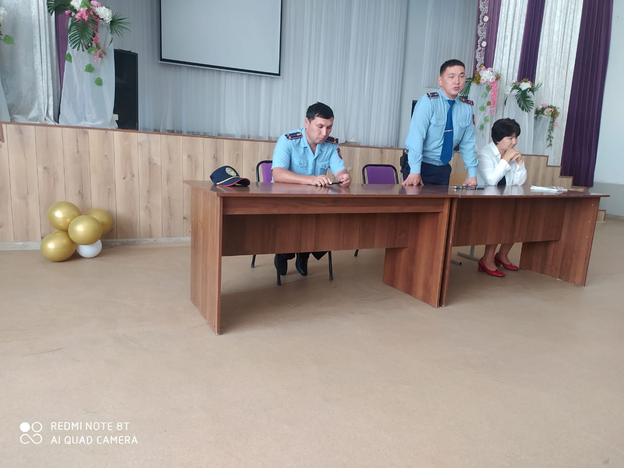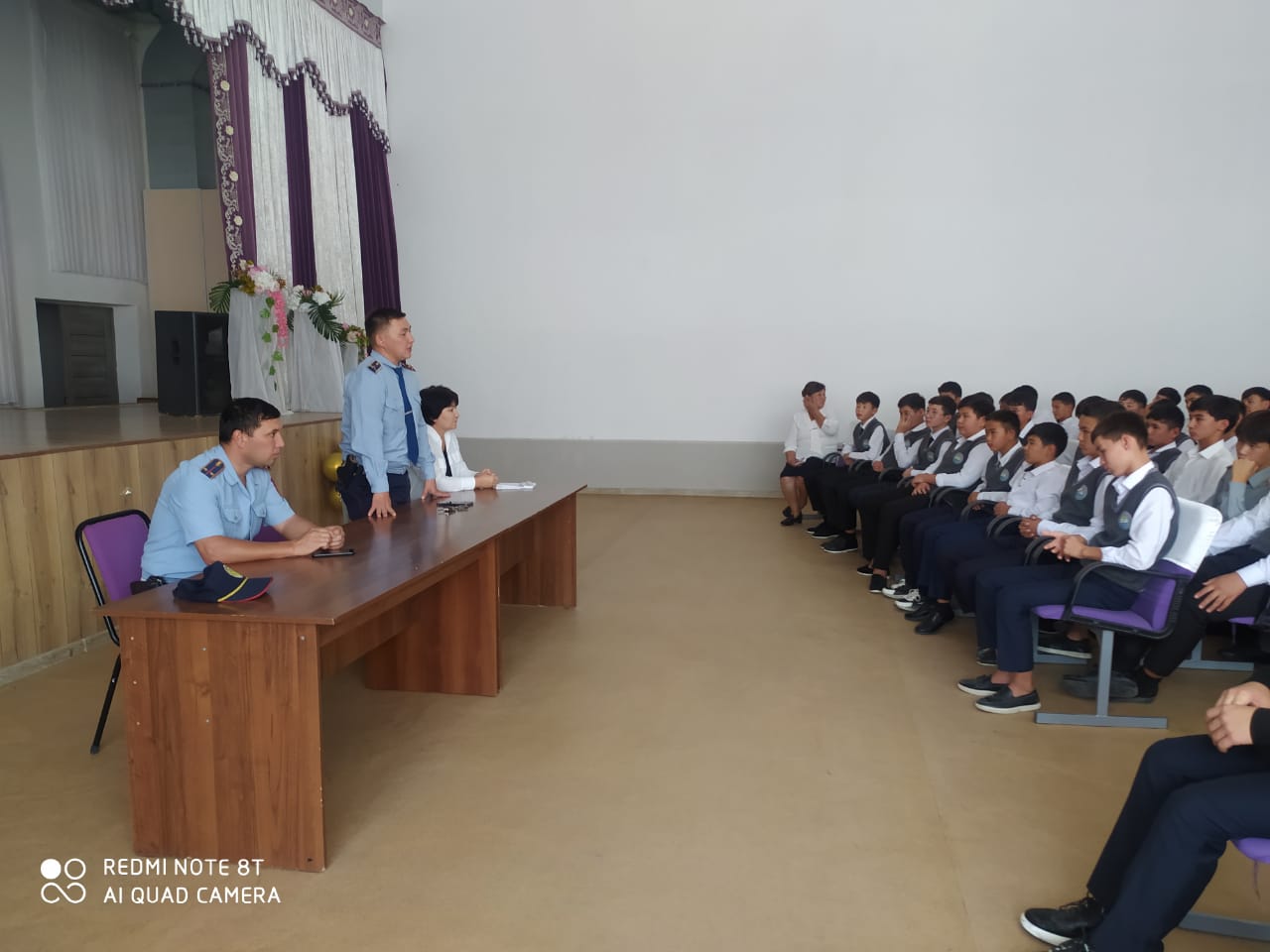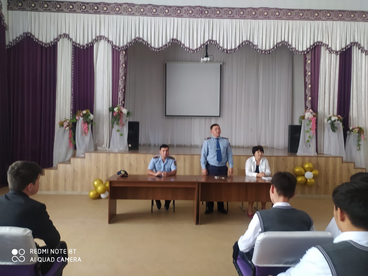 2023 жылдың 11 қыркүйек күні Д.Қонаев атындағы орта мектебінде 8-11 сынып оқушыларымен "Бопсалаумен әлімжеттікке - жол жоқ" тақырыбында түсіндірме жұмыстары жүргізілді. Түсіндірме жұмыстарын Шу АПБ ЮПТ инспекторлары Кумеков Нурбек Кенжебаевичпен Ж.Бижекеев жүргізіп, оқушыларға бопсалаумен әлімжеттіктің жауапкершілігі туралы жеткізді.Балаларға әрбір адамның , оның ішінде кәмелеттік жасқа толмағандардың құқығымен міндеттері жайлы ескертті.