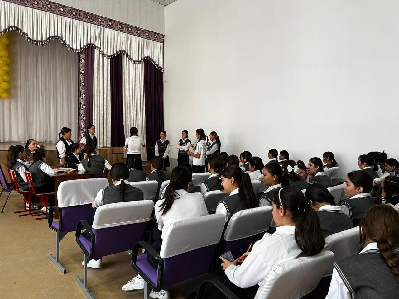 «Қыз – ұлт болашағы» тақырыбында ПСИХОЛОГИЯЛЫҚ ТРЕНИНГ САБАҚ, мектеп психологтары және клуб жетекшісі ұйымдастыруымен өтті. Психологтар ұйымдастырған тренинг-ойындар, cұрақтар мен өздерінің еркін жауаптарына қыздар таңқалды. Қыздар өздерін еркін ұстап, өз ойларын ашып айтты. Осындай түрде жиналыстар жиі болуын сұрады. Сонымен қатар қыздар сауалнама сұрақтарын талқылап, өздерінен кіші сыныптарға ақыл кеңес түрінде осындай жиналыстар өткізсек деді.