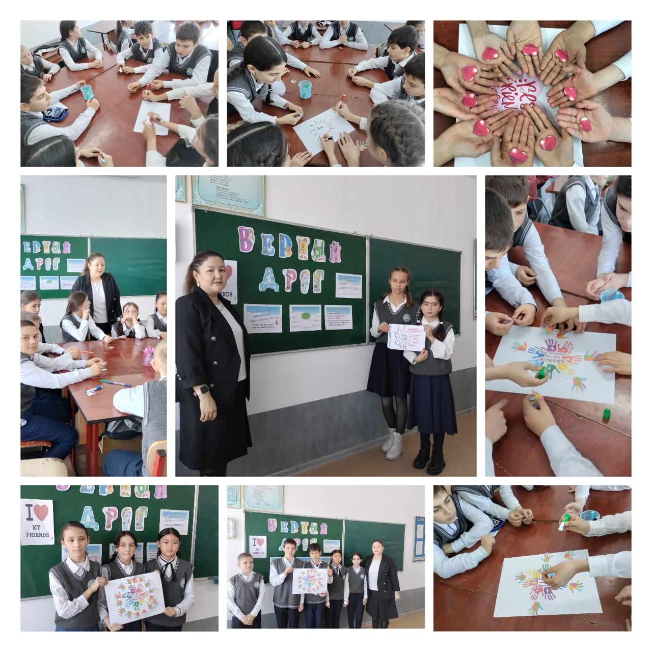«ДОСБОЛLIKE:  ДОСТЫҚ ҚОЛЫН ҰСЫН» АКЦИЯСЫ аясында  сынып сағаттары және “Дос болайық  бәріміз” әнін шырқады.