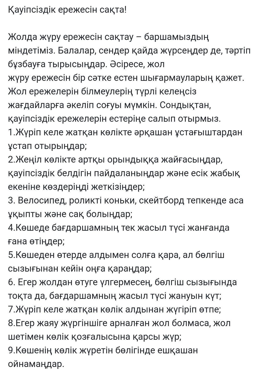 Жол жүру қауіпсіздік ережесі » Дінмұхамед Қонаев атындағы шағын орталықты орта мектебі
