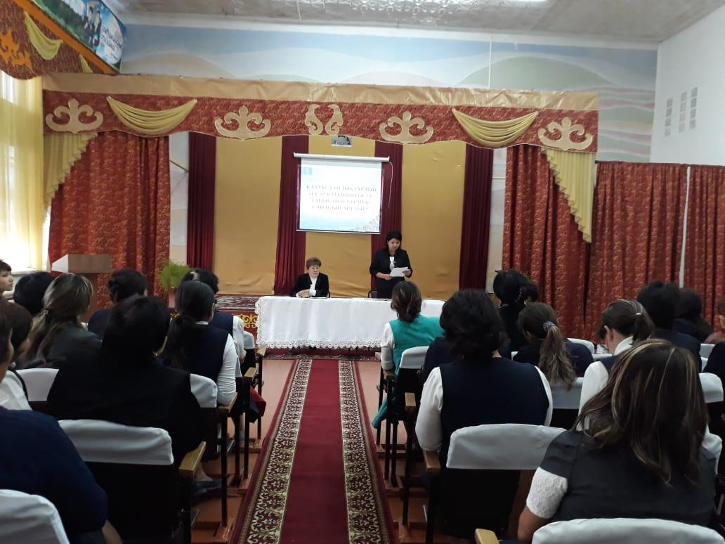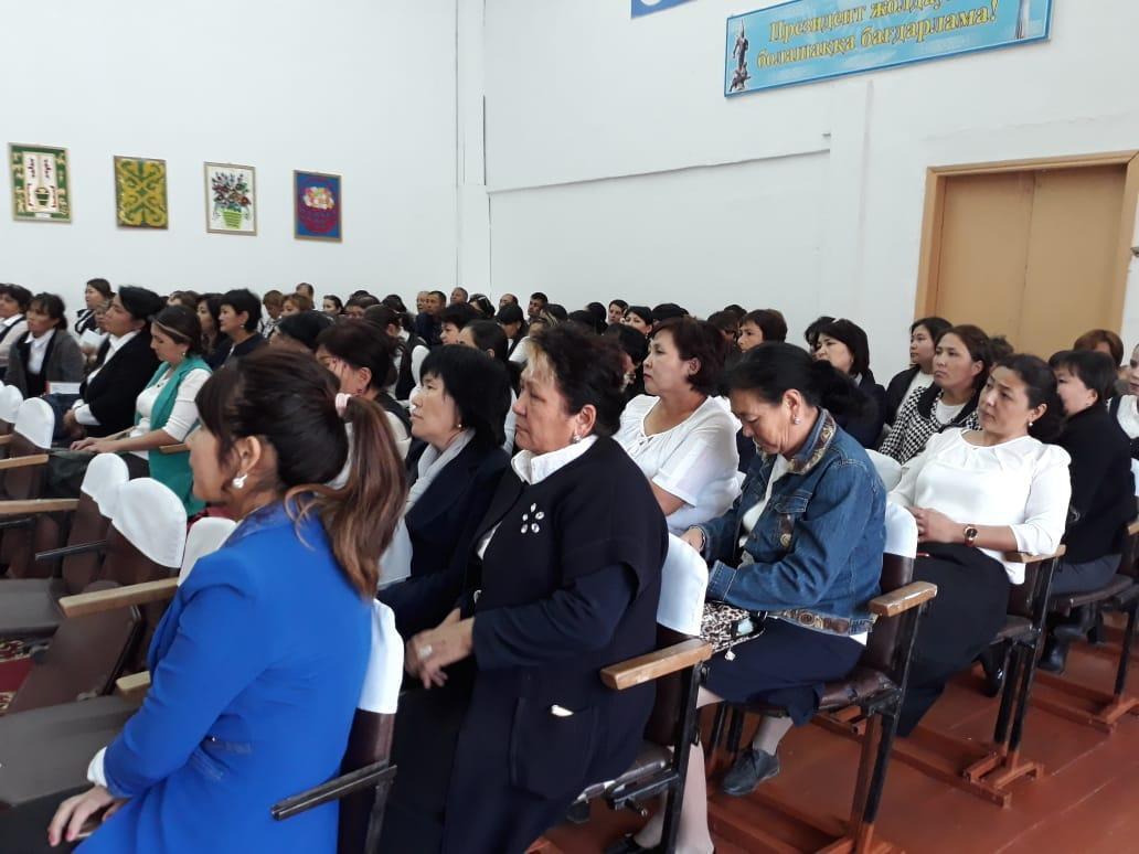 "Қазақстандықтардың әл-ауқатының өсуі:табыс пен тұрмыс сапасын арттыру" тақырыбындағы 2018 жылдың 5-қазанындағы Мемлекет басшысы Н.Ә.Назарбаевтың Қазақстан халқына Жолдауы Төле би атындағы шағын орталықты орта мектебінің ұжымына таныстырылып, талқыланды.