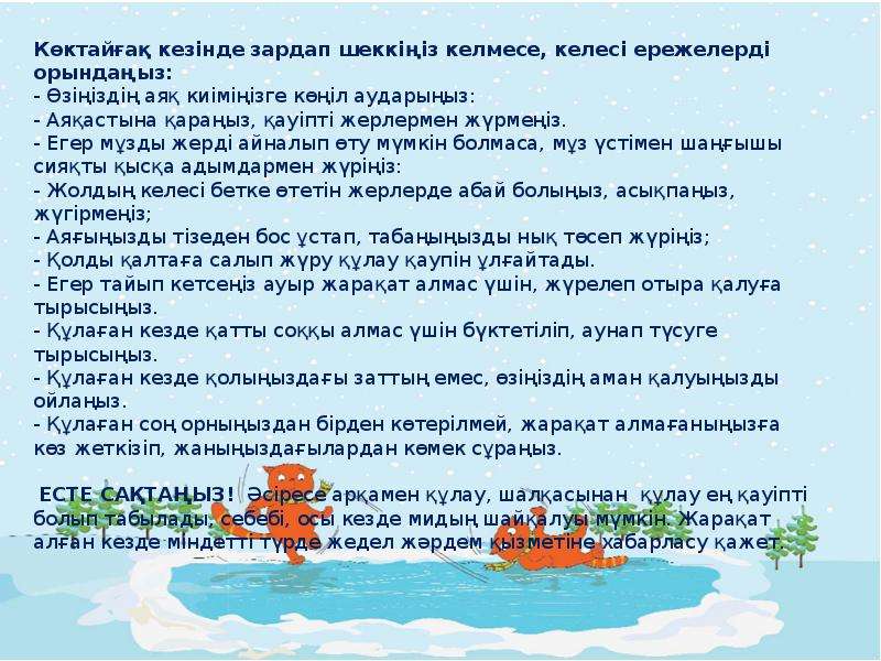 21 декабрь 2022 0 1 2 3 4 5 "Қысқы мезгілдегі қауіпсіздік" Балалардың қауіпсіздігін қамтамасыз ету мақсатында мектеп ата аналарына "Қысқы мезгілдегі қауіпсіздік" тақырыбында жадынама таратылып, әр сыныпта тұсіндіру жұмыстары жүргізілді.