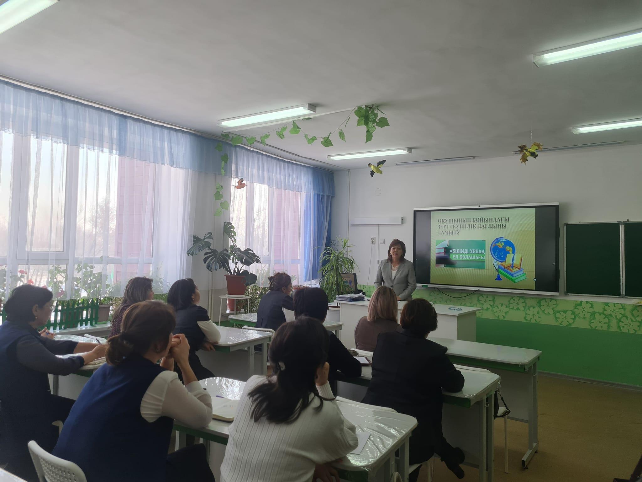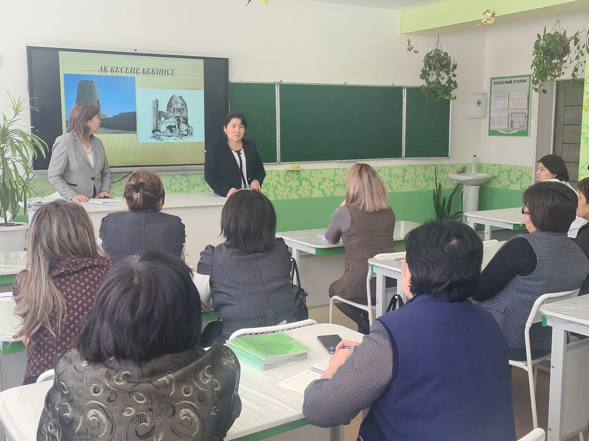 14 желтоқсан күні тарих пәні мұғалімі Г.А.Мыңжасарова "Оқушылардың бойындағы зерттеушілік дағдыны дамыту" тақырыбында мектеп мұғалімдерімен өз тәжірибесімен бөлісті