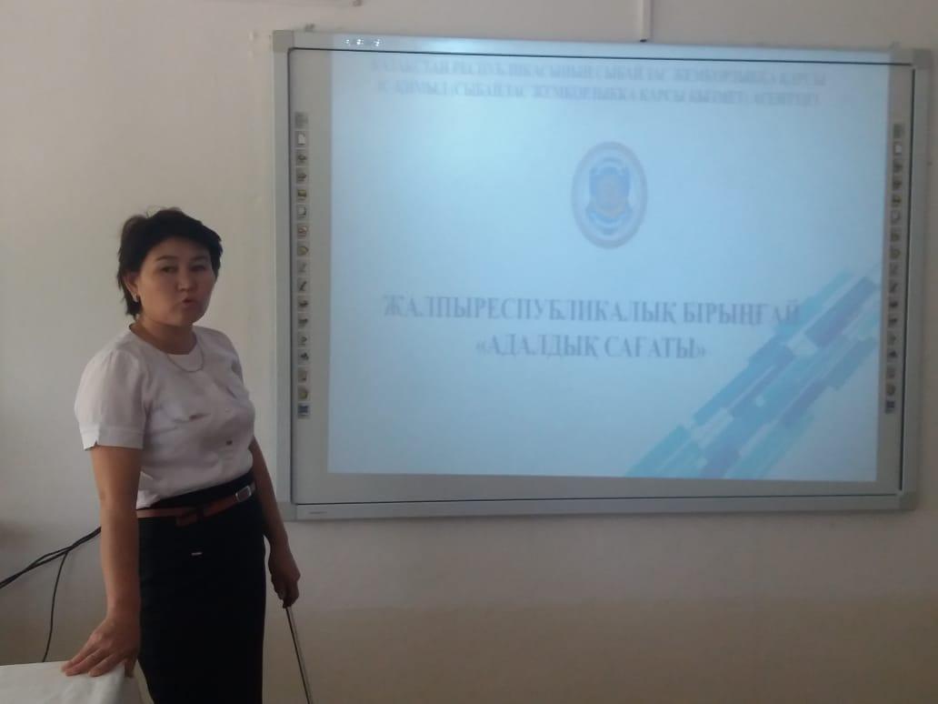 Төле би атындағы шағын орталықты орта мектебінде 2019 жыылдың 2 қыркүйек күні 9-10 сыныптар арасында Жалпыреспубликалық бірыңғай "Адалдық сағаты" өткізілді. Негізгі мақсаты: жалпыадамгершілік және ұлттық құндылықтар аясында өскелең ұрпақтың бойына сыбайлас жемқорлыққа қарсы мәдениетті қалыптастыру және оған қарсы тұруға тұлғаларды тәрбиелеу.