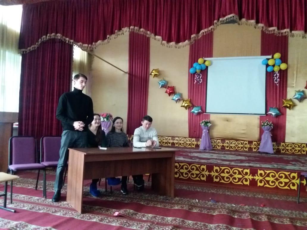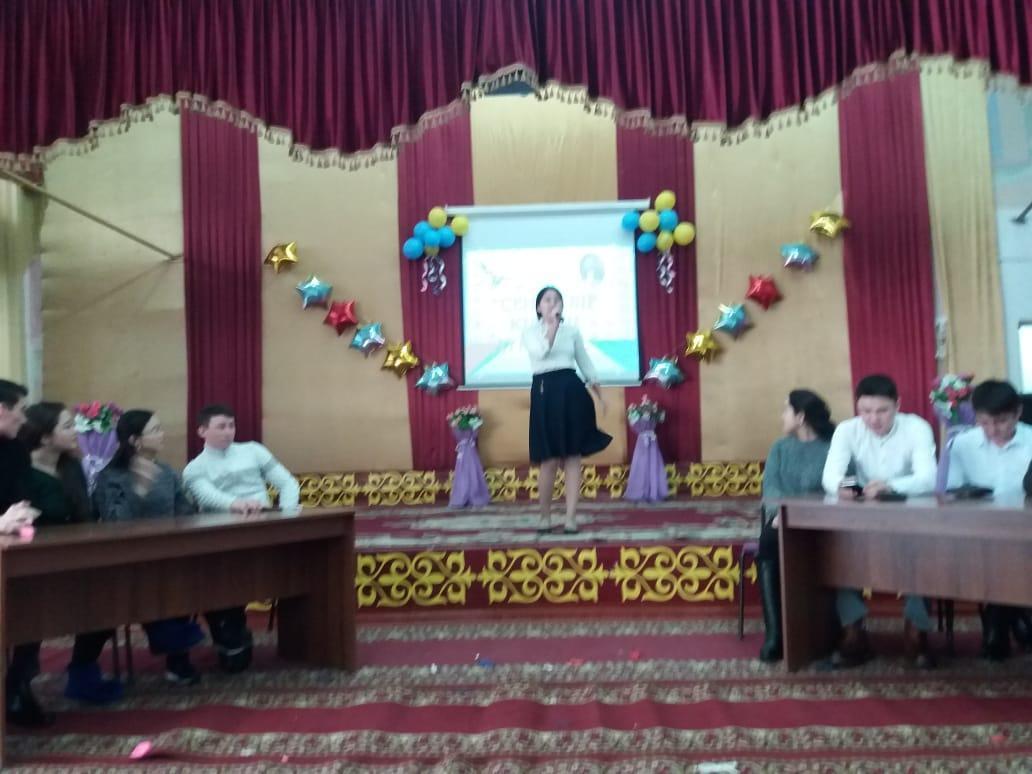 Абай Құнанбайұлының туғанына 175 жыл толуына орай "Сенде бір кірпіш дүниге..." тақырыбында мектеп біітрген түлектер, қазіргі студенттермен кездесу кеші болып өтті. Кеш психологтардың дайындаған тренингімен басталды. Кешке 9-10-11 сыныптар қатыстырылды. Оқушалар студенттерге өздерінің ойларында жүрген сұрақтарына жауап алып, қызықты өтті. Стууденттерден қонақ кәде сұралып, ұстаз туралы ән айтылып, өлең шумақтары оқылды.