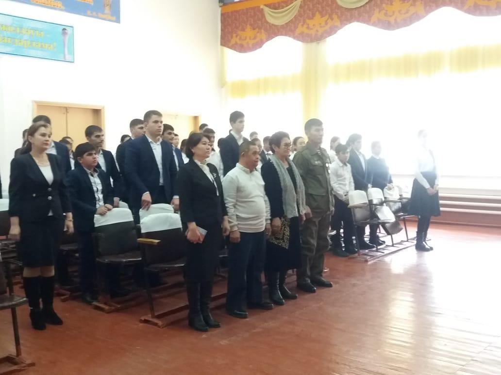Мектебімізде "Ауғаныстан-жүректегі жара" тақырыбында 6-10 сыныптардың қатысуымен ашық тәрбие сағаты өткізілді. Қонаққа ауылымызда ауған соғысына қатысқан азаматтарымыз Дүйсембаев Жақсылық Болысбайұлы, (Утепов Дулаттың) анасы Клепа Семенқызы, Бекиров Юсуф Сейфатович, Бороздин Данил Константитович шақырылып, елін жерін қорғаған азаматтарымызға арналған кездесу кеші болып өтті. Қонақтарымыз Ауғаныстан жерінде болған оқиғаларымен бөлісіп, болашақ ұрпаққа бейбітшілік өмір тілеп, лебіздерін білдірді. Оқушылар дайындаған ән-би жырларын арнап, азаматтарымызға елге аман-сау оралып, денсаулық тілеп батырларымызды мәңгі есте ұстап, құрметтеу керектігін айтып өтті.