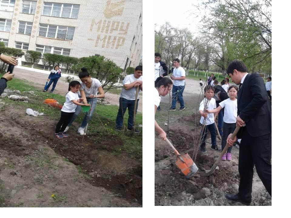 сынып оқушыларымен бірге бірлесе отырып,әртүрлі ағаштар отырғызды.