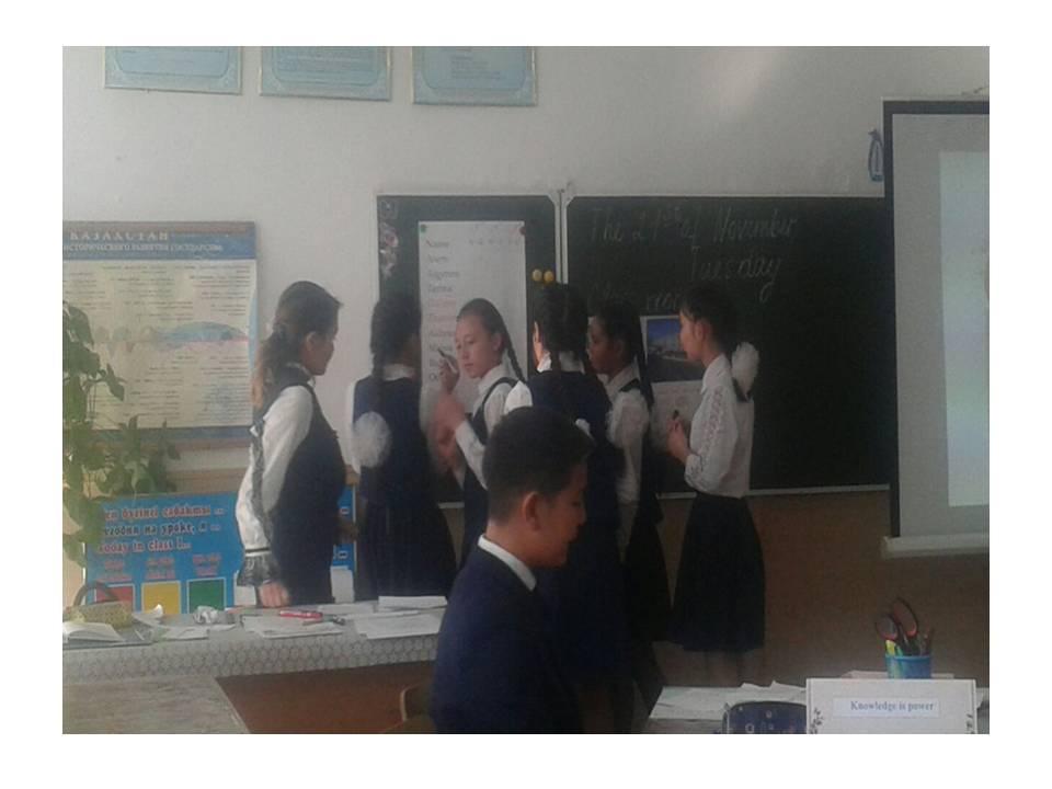 8 сыныптармен «Schools in Kazakhstan» тақырыбында ашық сабақты Ақжолова Айгерім