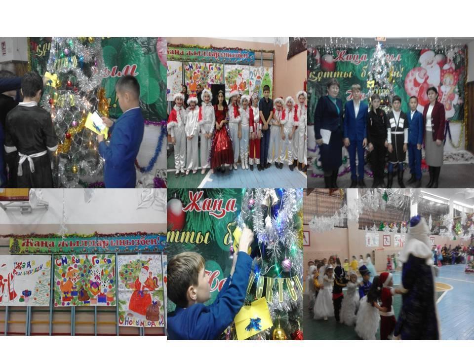 Жылда шырша мерекесі өтетін спорт залы талапқа сәйкес безендірілді,үлкен шырша орнатылды.9-11 сыныптардың салған қабырға үн қағаздары ілінді.9-11 сынып аралығында қабырға үн қағаздары арасынан байқау жарияланып,орындар берілді. 1- орын 10 "б,в" сыныптары, 2-орын 11 "а",9 "в" сыныбы, 3-орын 9 "а,б" сыныптары мақтау қағазымен марапатталды.