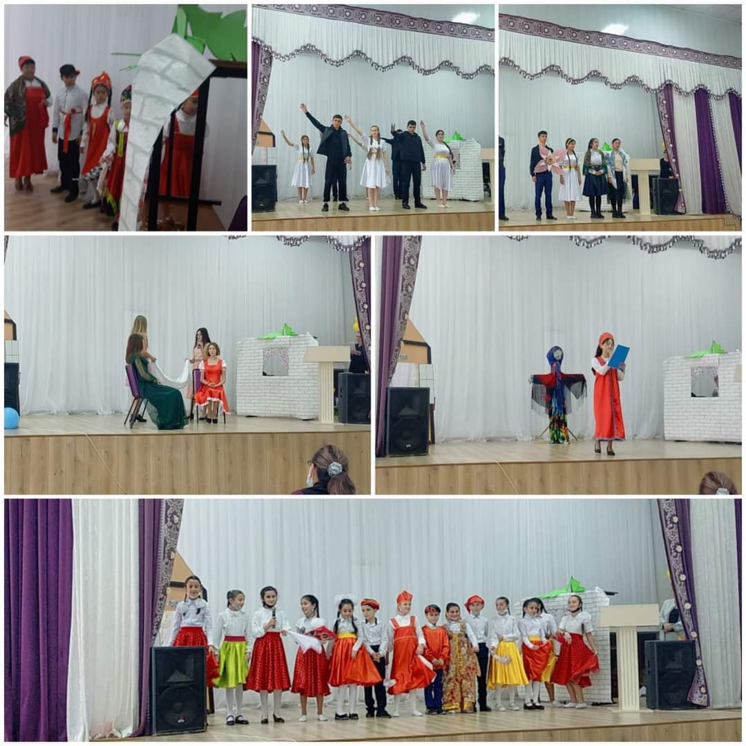 На фольклорном вечере учащиеся 4, 5, 6 классов исполнили частушки совместно с учителем русского языка и литературы Исмаиловой Р.А.