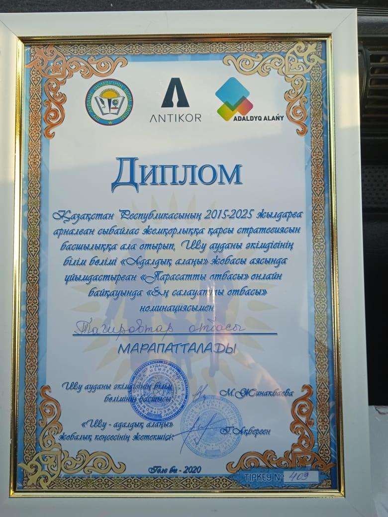 Қазақстан Республикасы Сыбайлас жемқорлыққа қарсы іс-қимыл агенттігінің Жамбыл облысы бойынша "Жамбыл-адалдық алаңы" жобалық офисінің бастамасымен Шу ауданы әкімдігінің білім бөлімінің ұйымдастыруымен   қоғамда парасаттылық құндылықтарын кеңінен насихаттау және өңірдегі үлгілі, үздік отбасыларды анықтау мақсатында "Парасатты отбасы" байқауы өткізілді.