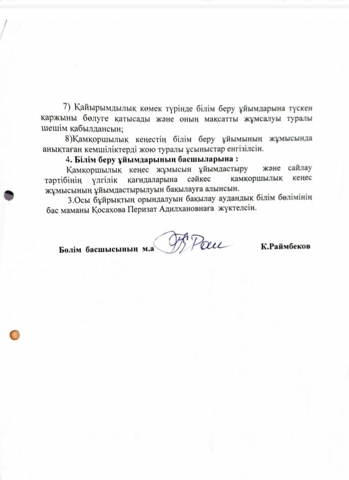 Қамқоршылық кеңес бұйрық » Дінмұхамед Қонаев атындағы шағын орталықты орта мектебі