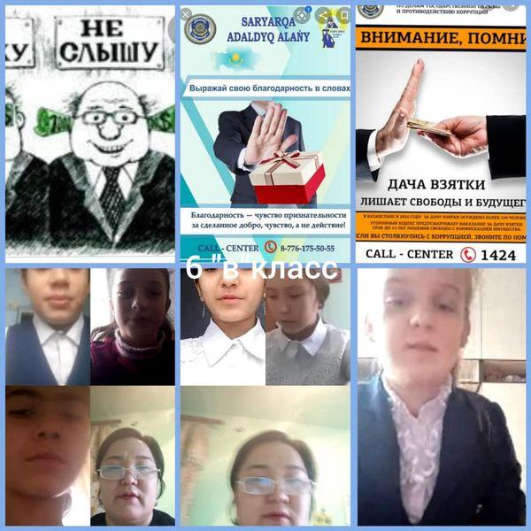 онаев ауылы Төле би атындағы орта мектебінің ДҚТІЖО А.Д.Джуаспаеваның ұйымдастыруымен 09.12.2020 ж. Халықаралық сыбайлас жемқорлыққа қарсы күніне арналған "Сыбайлас-жемқорлыққа жол жоқ" атты сынып сағаттары өткізілді.Мақсаты: Сыбайлас жемқорлық деген ұғымды түсіндіру.