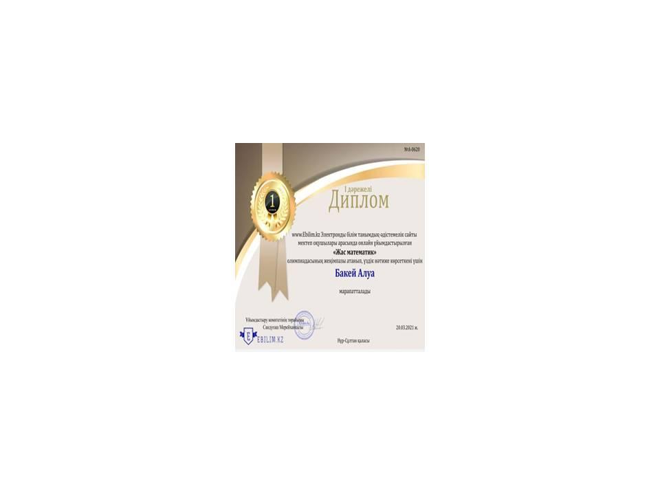 2021 жылы « Жас математик» олимпиадасының жеңімпазы атанып үздік нәтиже көрсеткені үшін