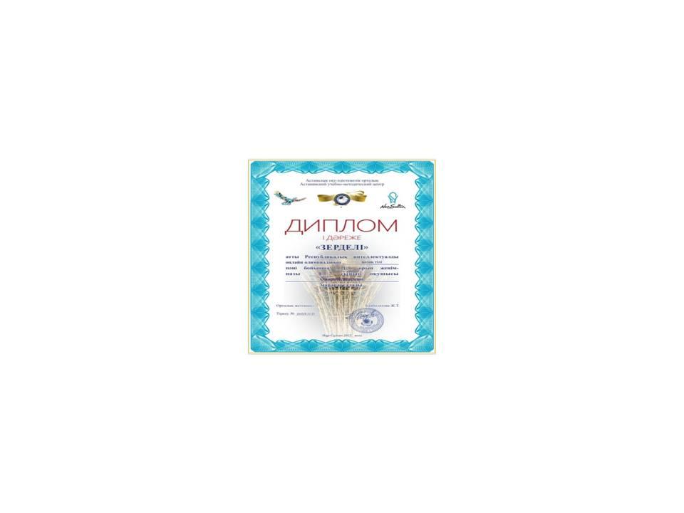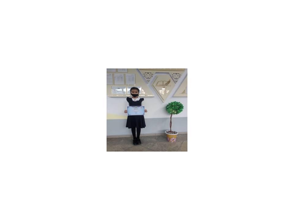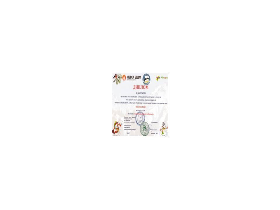 2021 жылы Ұлттық Интернет Олимпиада сайтында Бастауыш сыныптар арасында ұйымдастырылған қашықтықтан ІІ дәрежелідипломмен марапатталды.