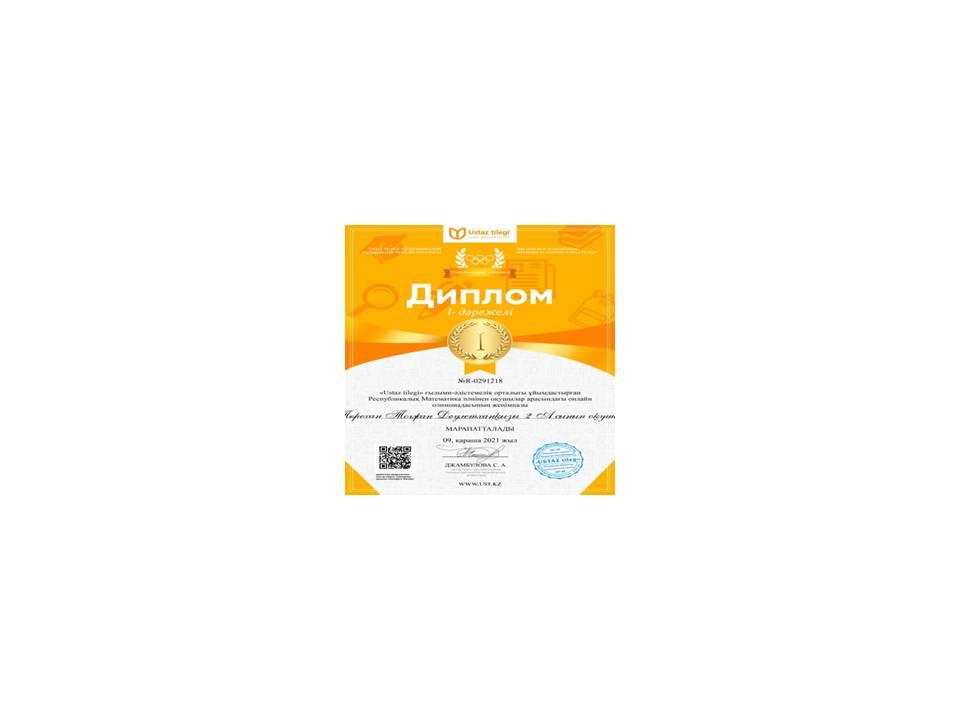 2021 жылы республикалық «Ұстаз тілегі» сайтында бастауыш сынып бойынша математика пәнінен олимпиадаға қатысып , Қазыбаева Айзере ІІ дәрежелі , Төрехан Тоғжан І дәрежелі дипломмен марапатталды