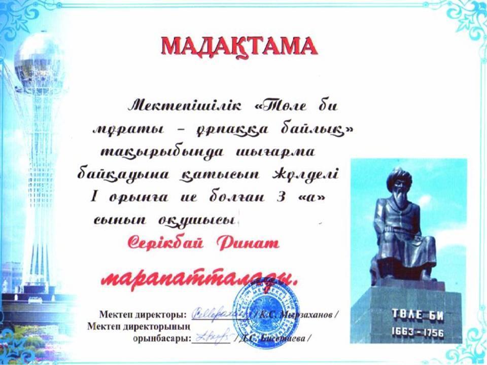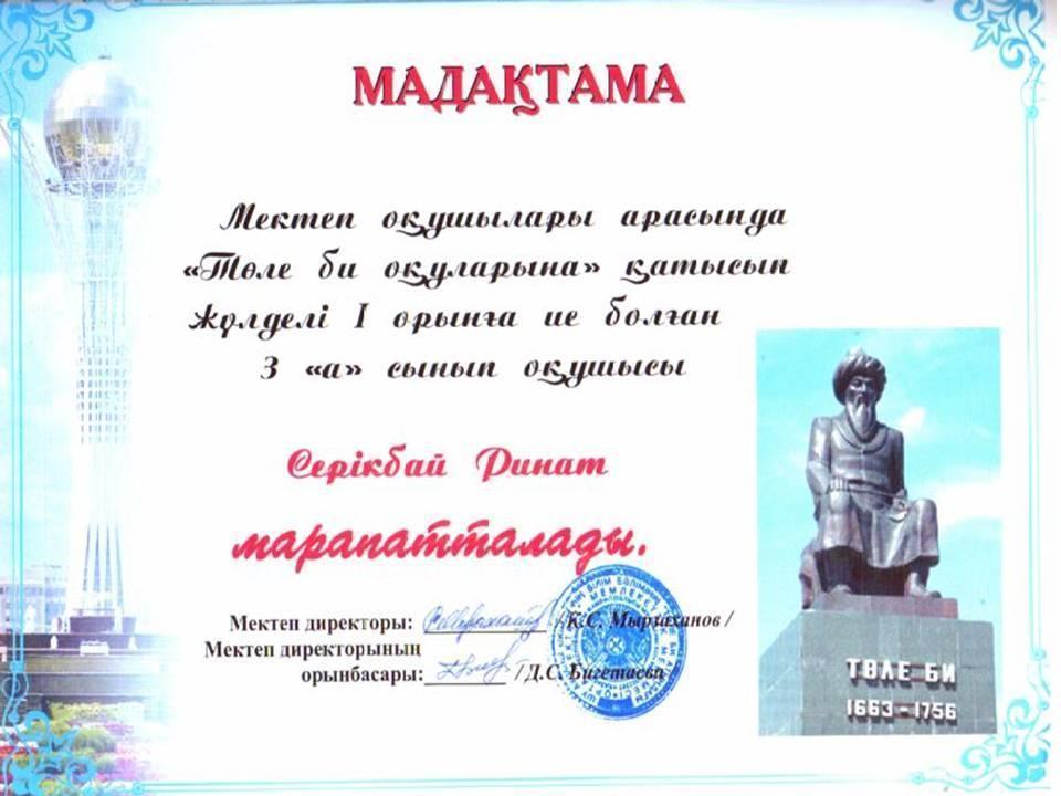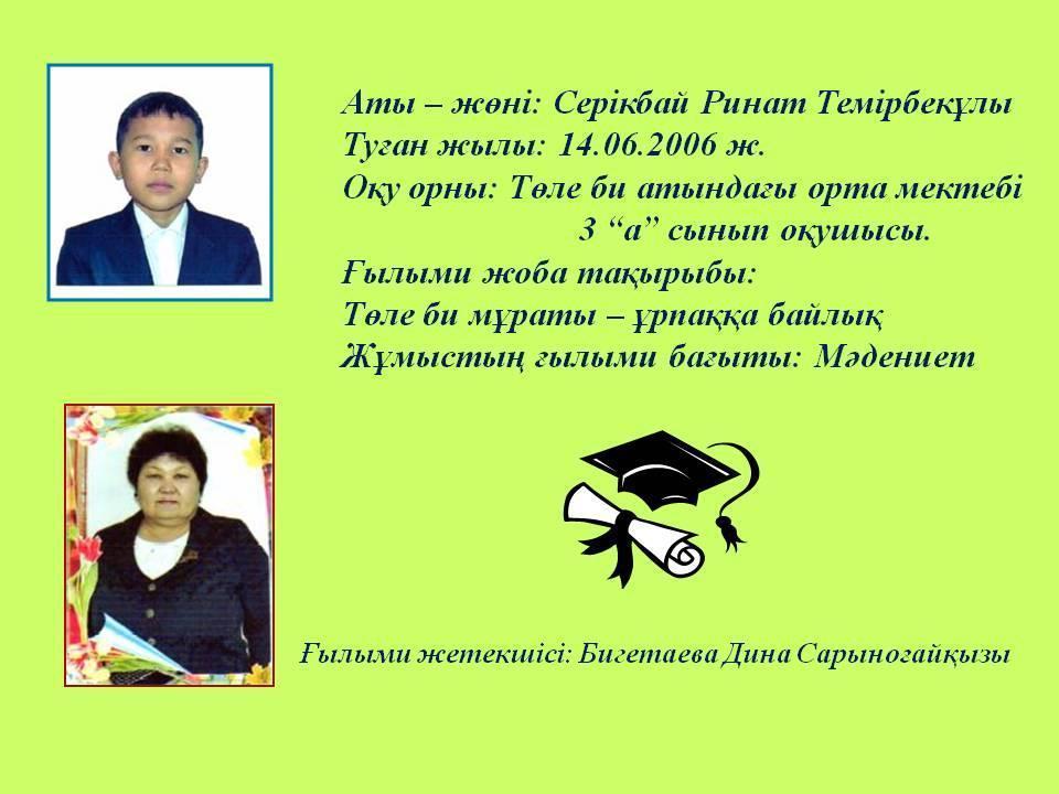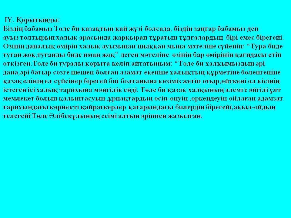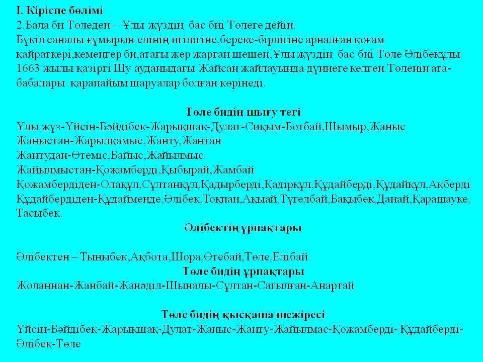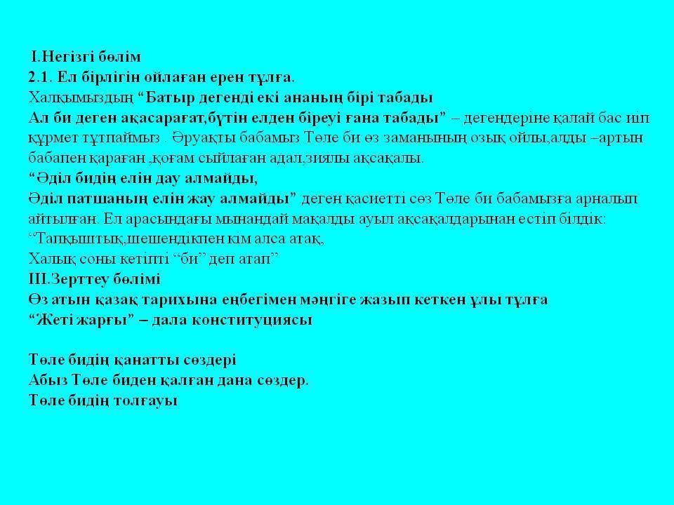 15 сентябрь 2016 100 1 2 3 4 5 Төле би мұраты – ұрпаққа байлық Ғылыми жоба тақырыбы:Төле би мұраты – ұрпаққа байлық