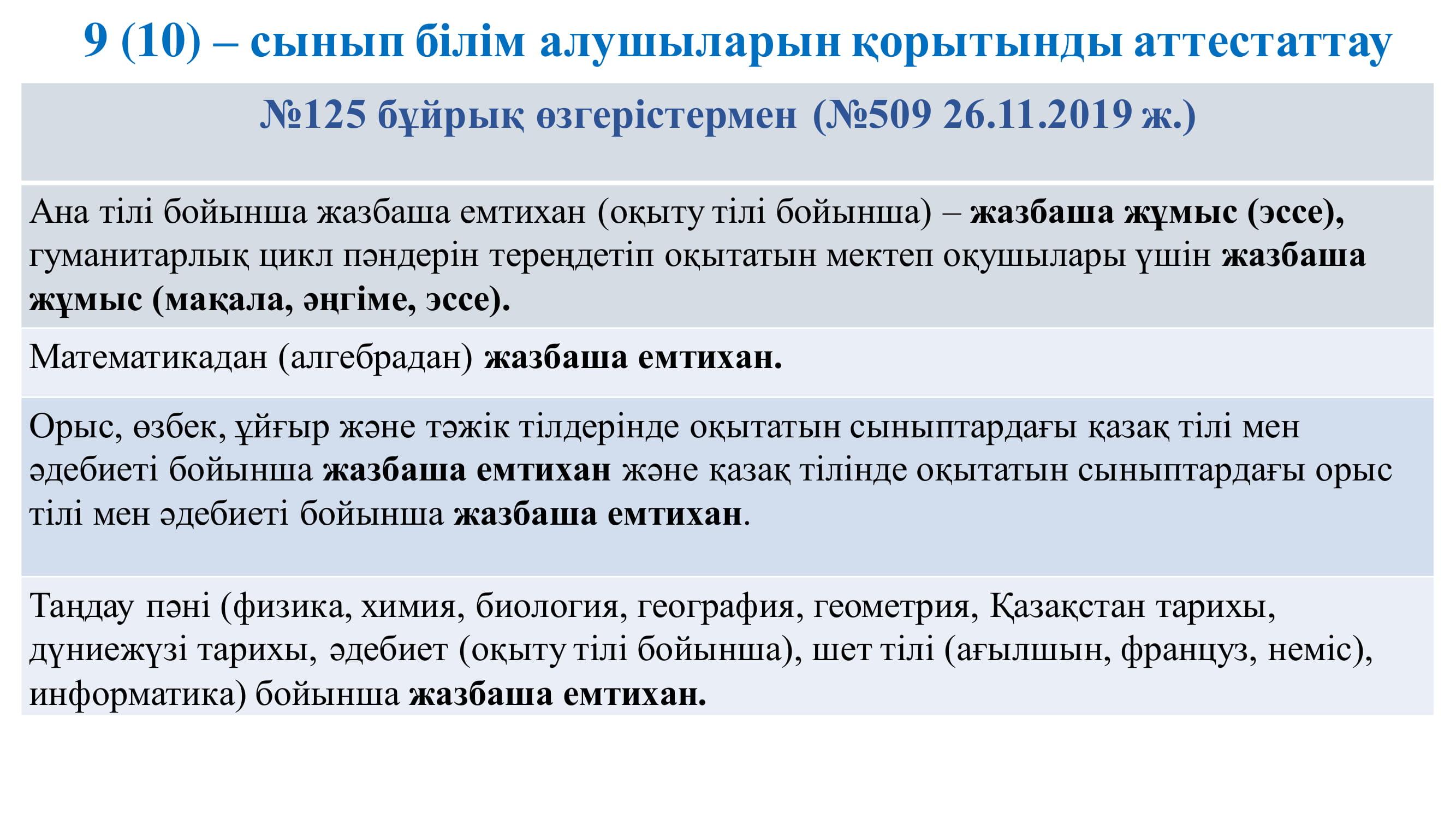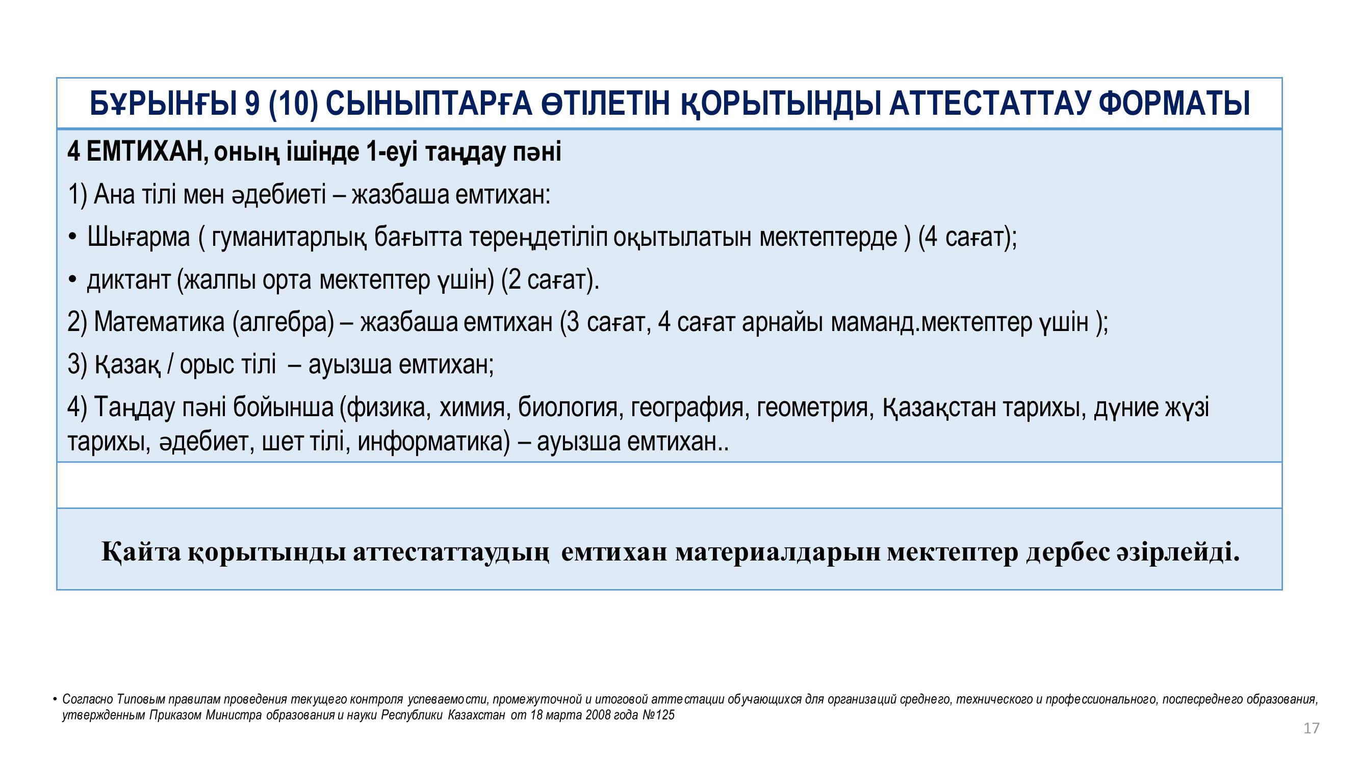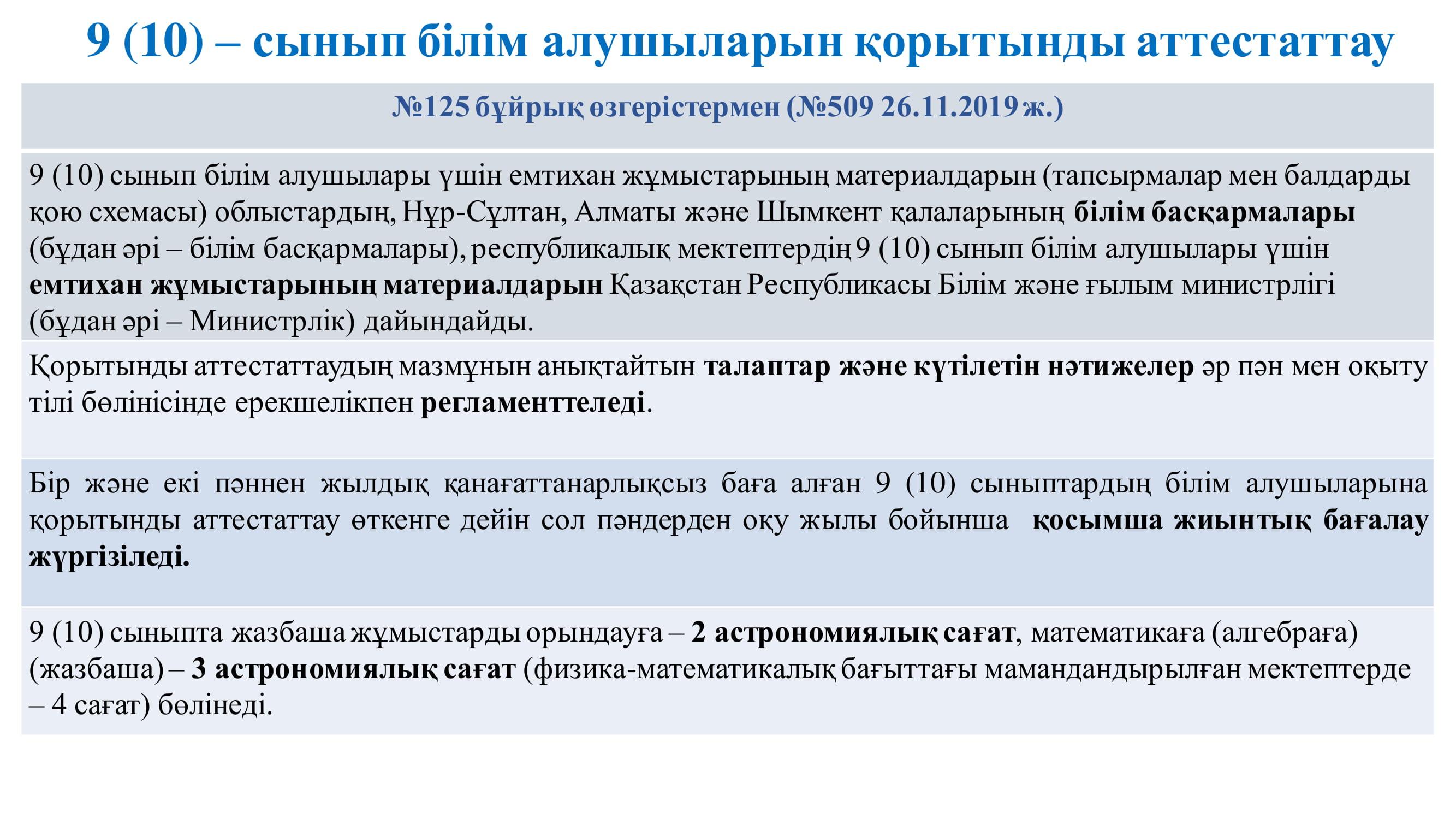 11 март 2020 0 1 2 3 4 5 Қорытынды аттестаттау 9 сынып білім алушыларын қорытынды аттестаттаудан өткізуді ұйымдастыру9-kl.pdf [2,43 Mb] (cкачиваний: 76) Посмотреть онлайн файл: 9-kl.pdf 9-kl.pdf [2,43 Mb] (cкачиваний: 76) Посмотреть онлайн файл: 9-kl.pdf