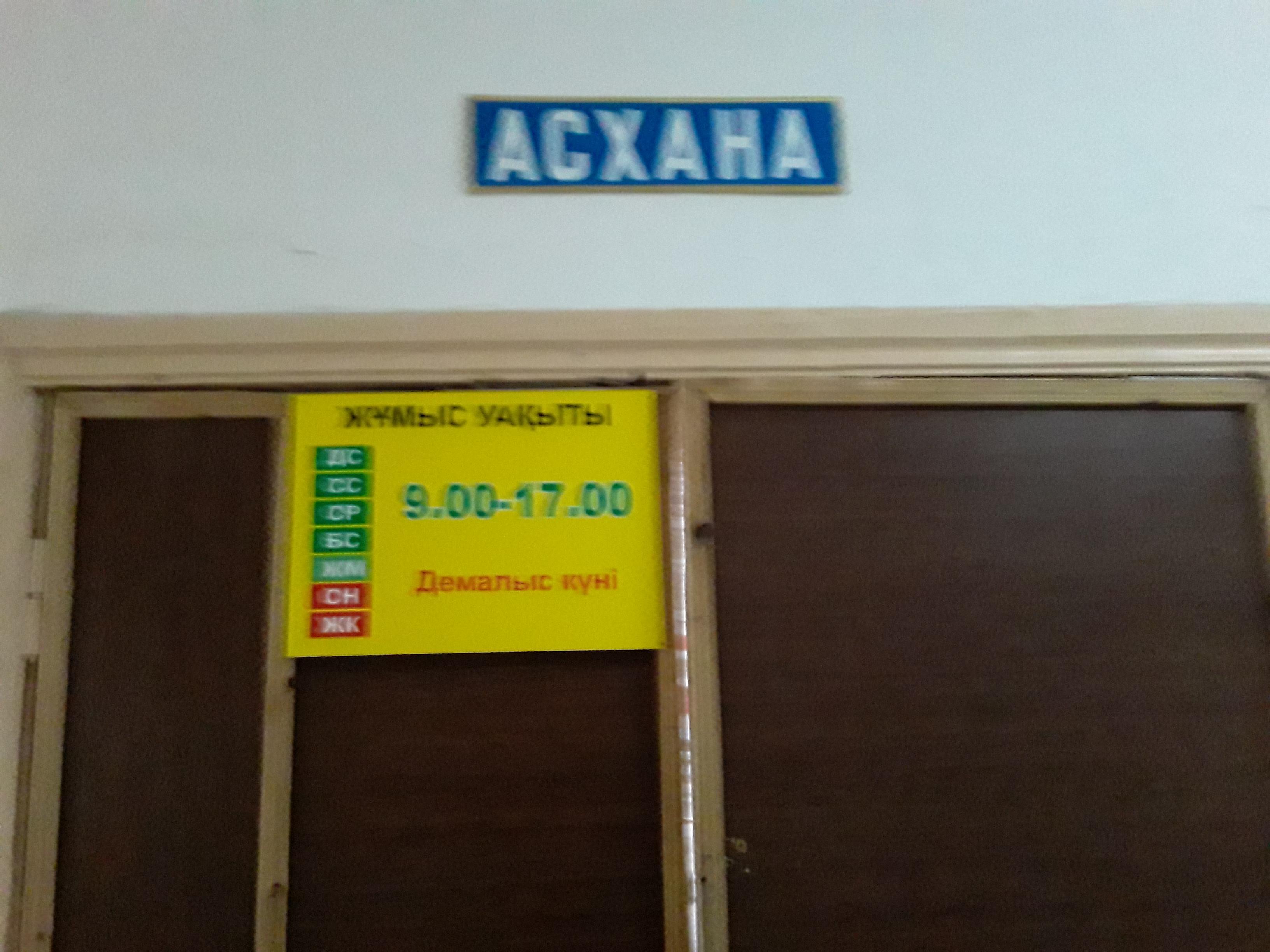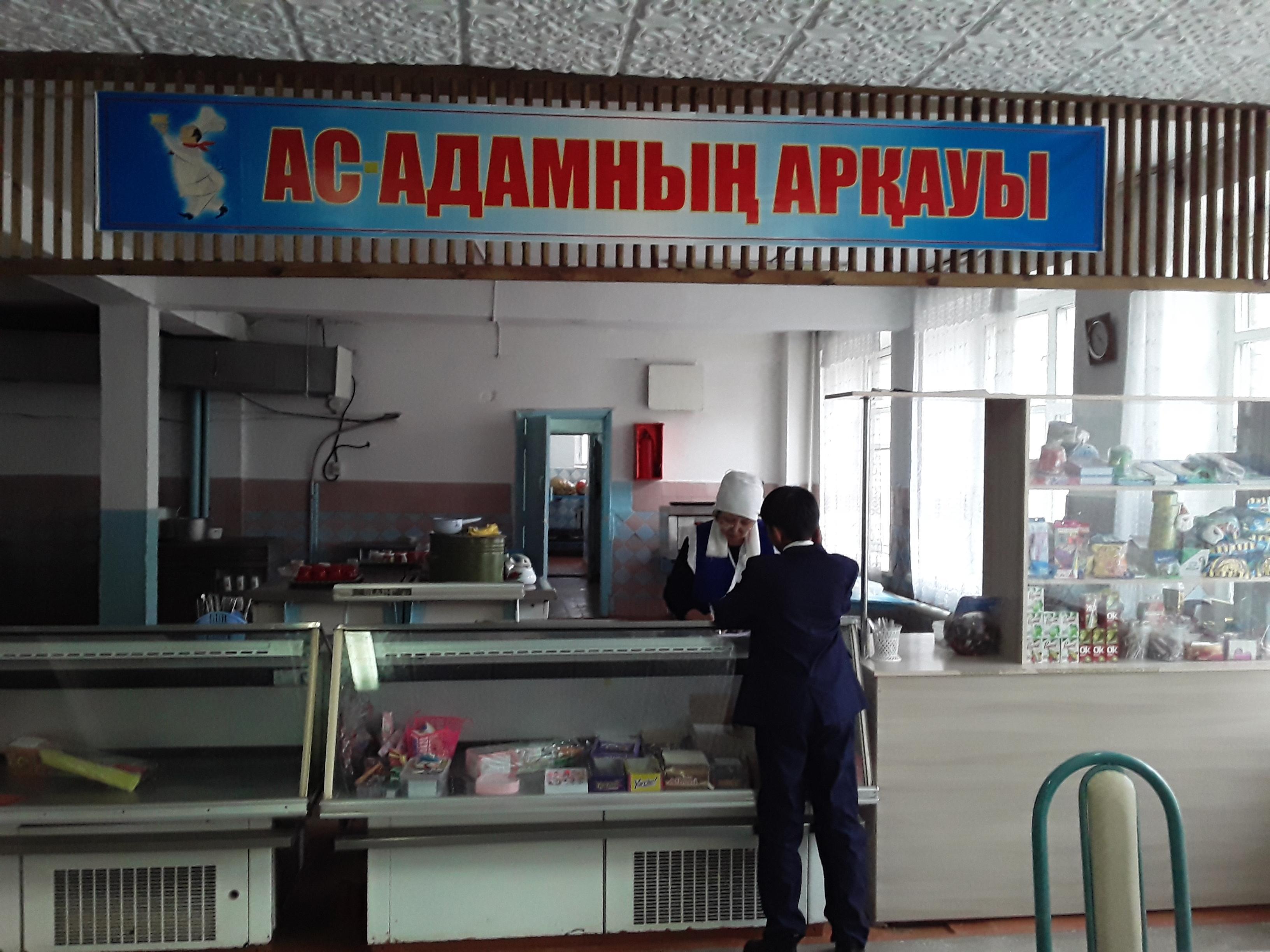 Әр айдың 10 жұлдызында мектеп асханасында ата-аналарға «Ашық есік » күні өткізіледі. Мектеп асханасынан «Адал бұрышы »дүкеніне мектепішілік бұйрық шығарылып,аталған «Адал бұрышы» дүкені акция ретінде аптасына бір рет ,арнайы стендтермен рәсімделіп жұмыс жасайды.Тамақтанатын оқушылардан ай сайын асхананың қызметі, тамақтың сапасы туралы сауалнамалар алынып, мектеп биологтары, психологтары, әлеуметтік маман түрлі тақырыптарға жоспар бойынша баяндама жасап отырады. Күнделікті оқушылардың тамақтануын асхана арендаторы А.Сәрсенбаева мен аспазшы Т.Аббасова қадағалап тұрады.