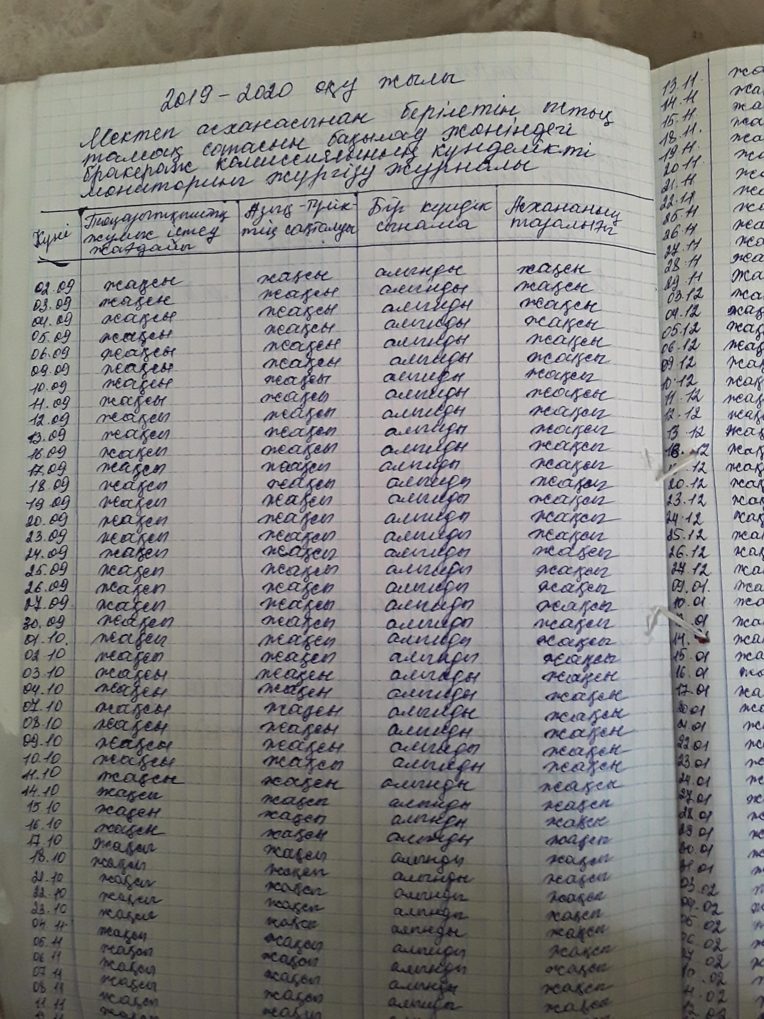 МЕКТЕП АСХАНАСЫНДАҒЫ ЫСТЫҚ ТАМАҚ САПАСЫН БАҚЫЛАУ