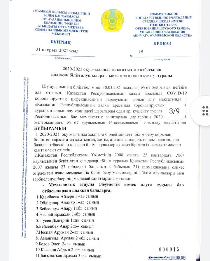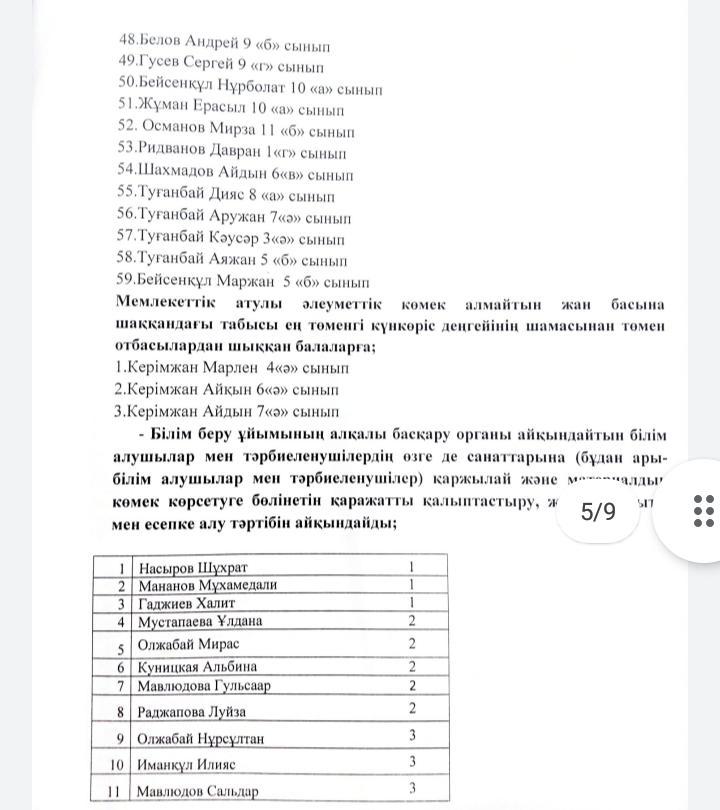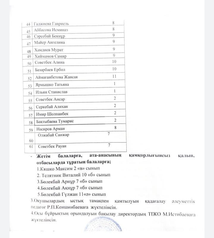 Аз қамтылған отбасынан шыққан білім алушыларды ыстық тамақпен қамту БҰЙРЫҚ » Дінмұхамед Қонаев атындағы шағын орталықты орта мектебі