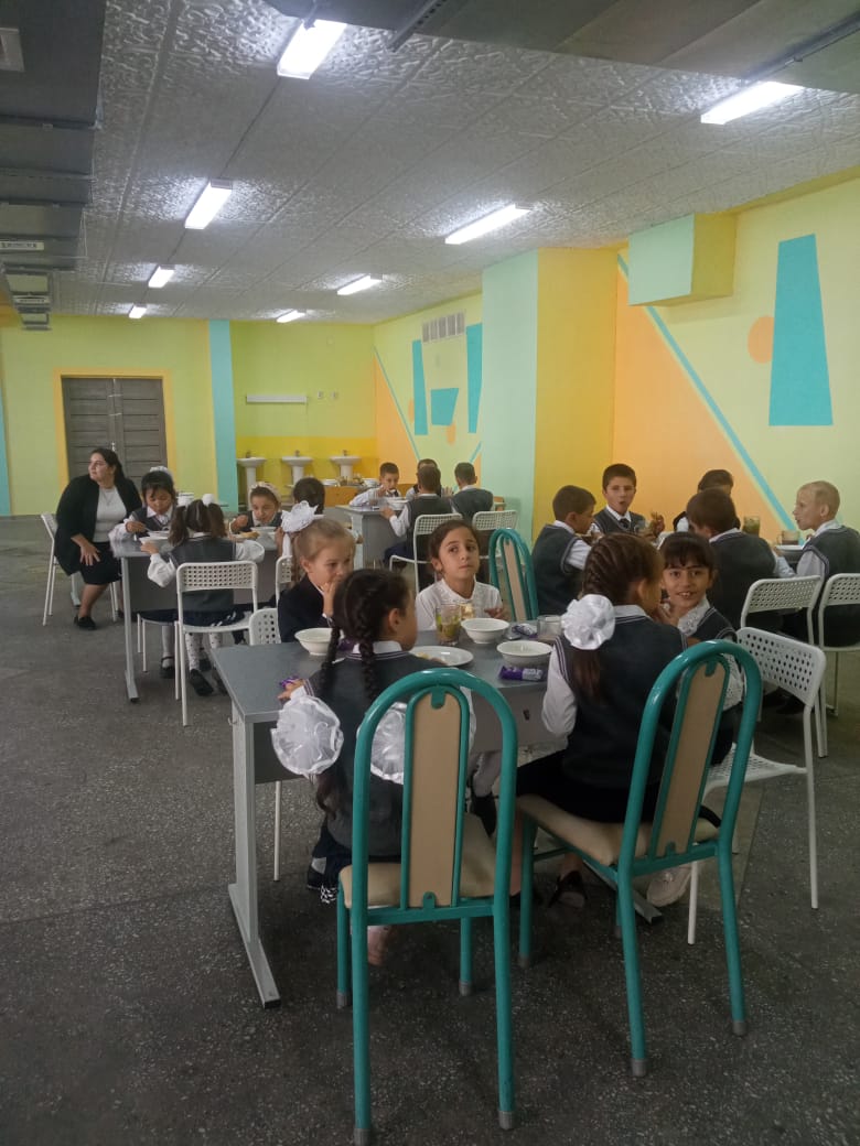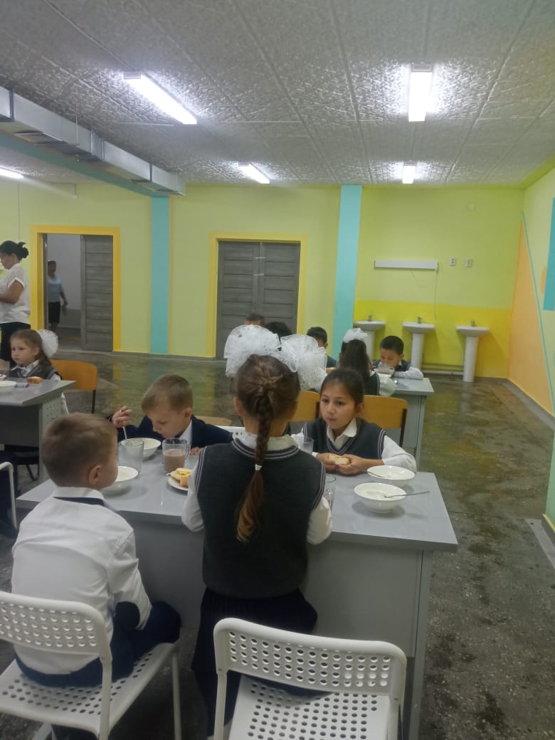Дінмұхамед Қонаев атындағы орта мектебінде 2023-2024 оқу жылында бастауыш 1-4 сынып арасында  жалпы 458 оқушы бір мезгіл ыстық тамақпен қамтылып, бекітілген ас мәзіріне сәйкес мектеп асханасында тамақтанды. Асханада бәрі талапқа сай, тазалық жұмыстары қатаң сақталуда. Ас дәмді болсын!